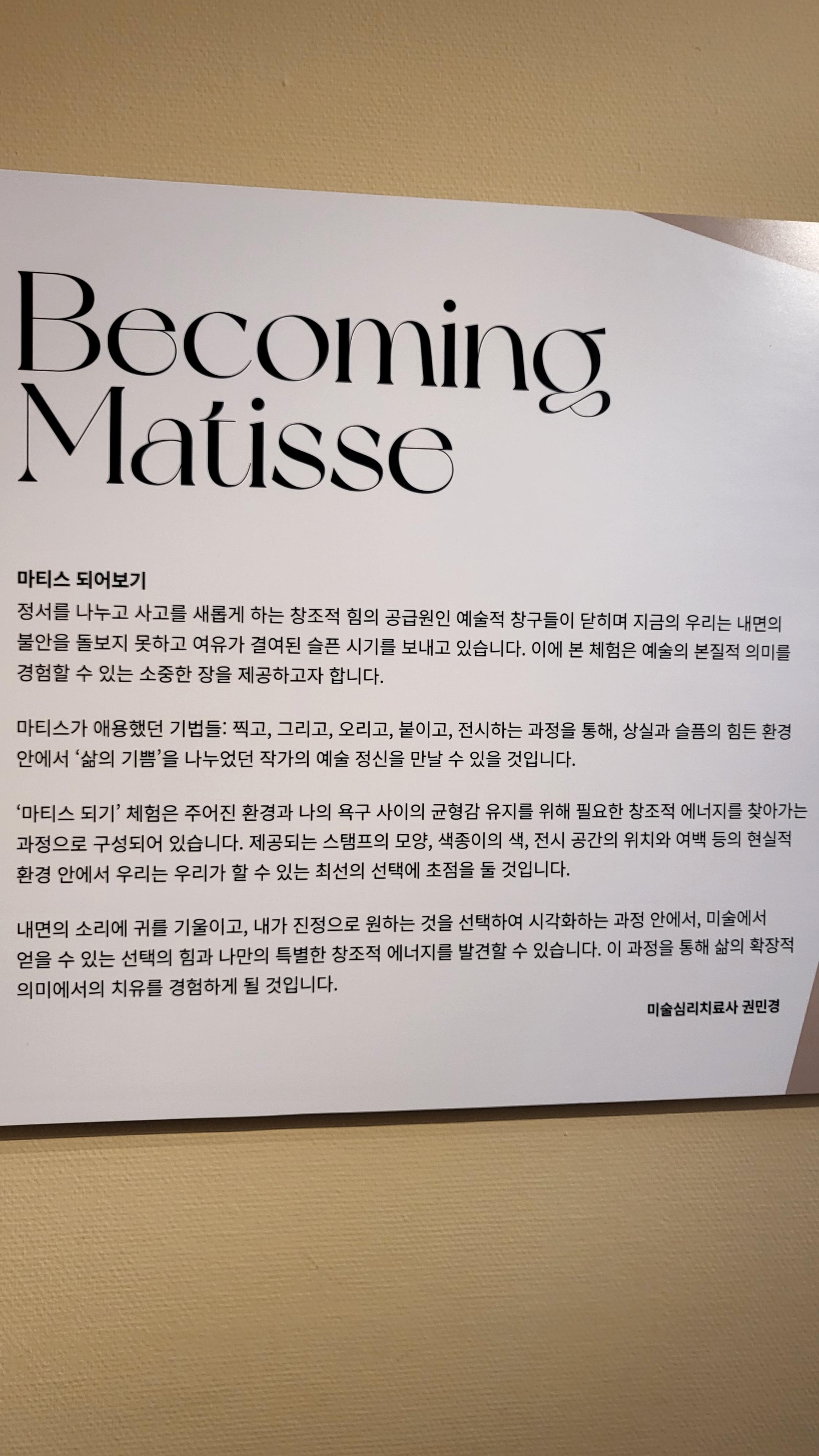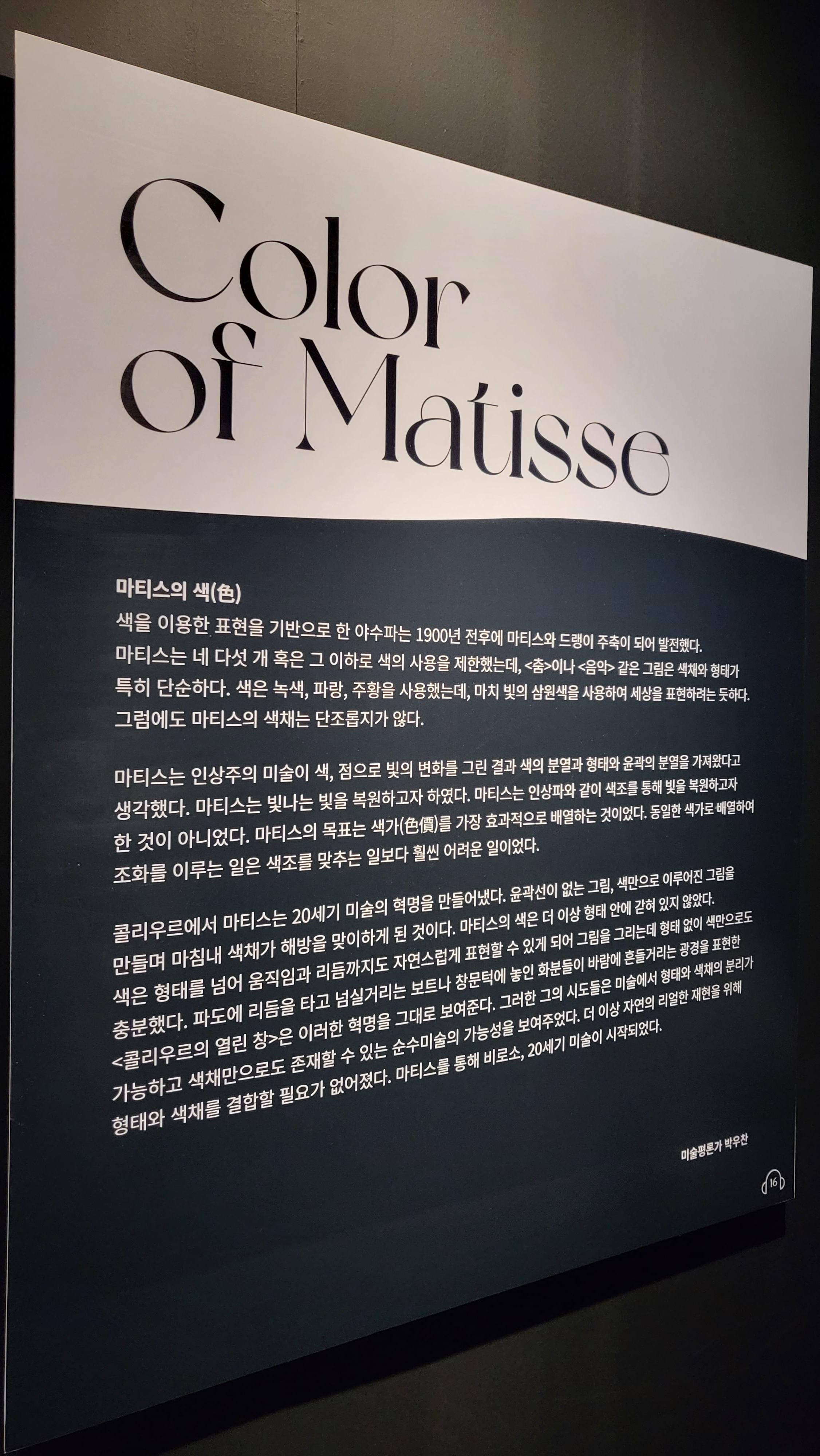그 곳에서는 배경이나 오브제, 인물의 표정, 움직임 등을 연구한 앙리 마티스의 작품들로, 섬세한 작가의 작업이 느껴졌습니다.