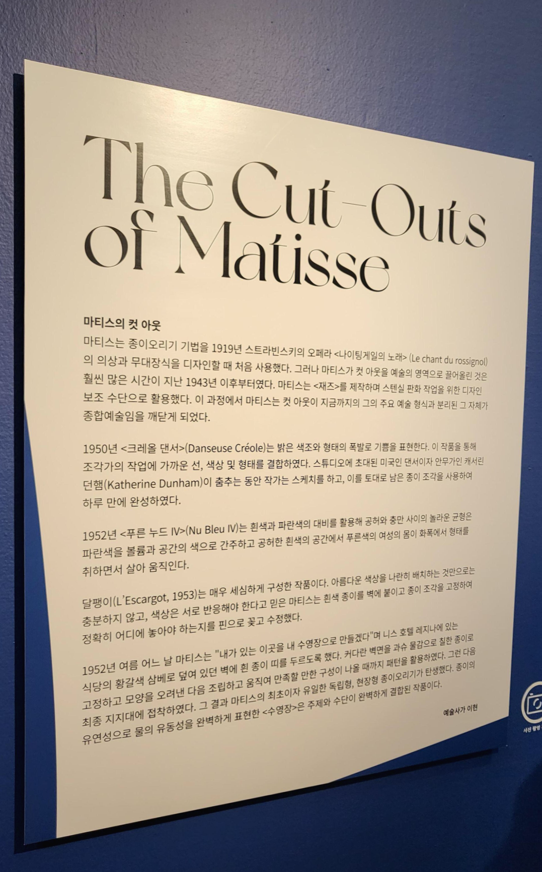 그리고 사진을 찍을 수 없었던 앙리 마티스의 작품을이 세심하고 섬세했어서 꼭 다녀 오시라고 추천 드리고 싶습니다.