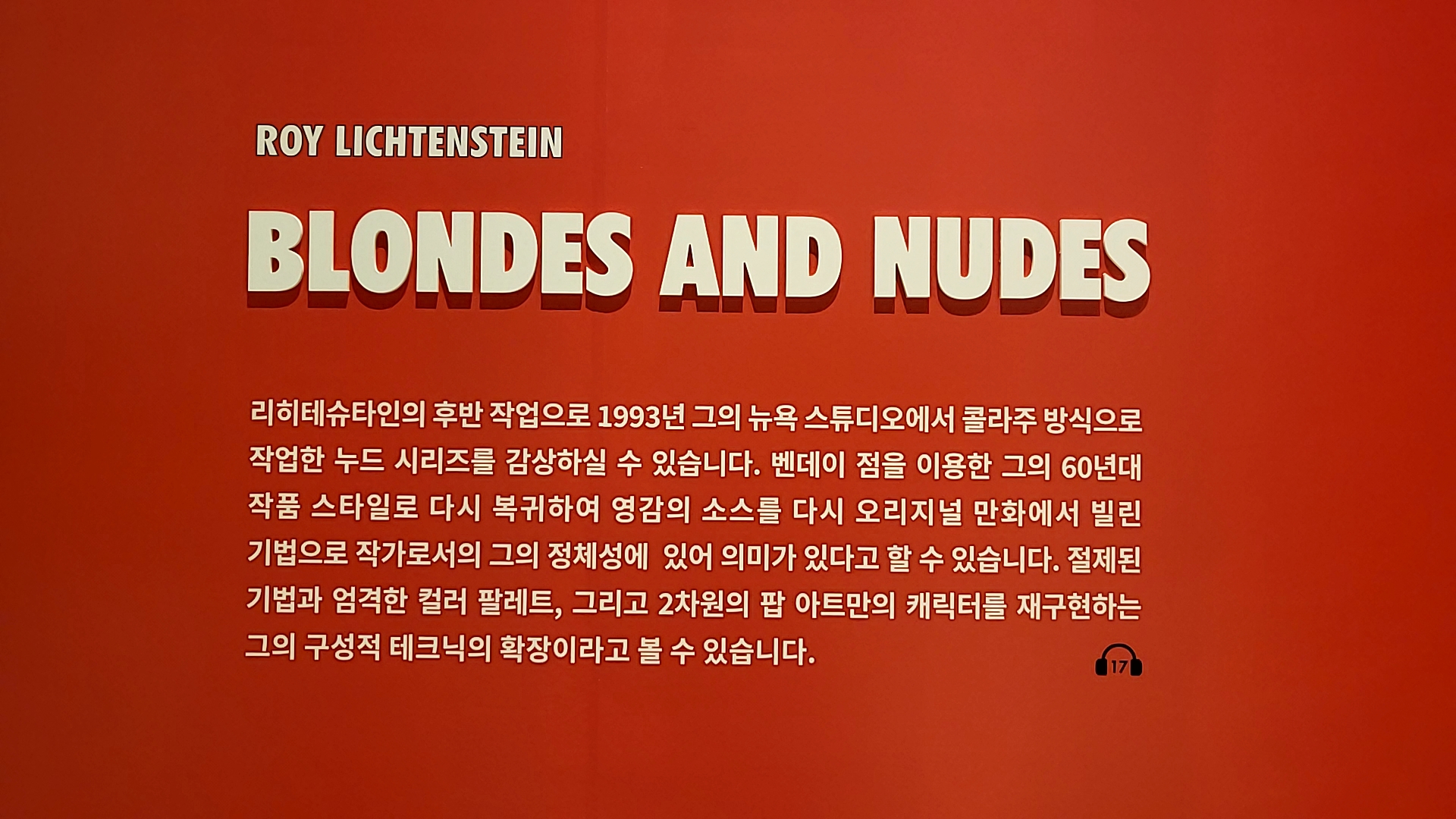 지난 일요일 오전 지인과 로이 리히텐슈타인 전시를 다녀왔습니다.