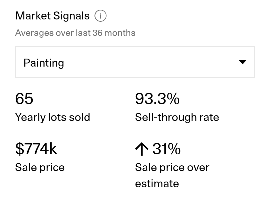 Nets 시리즈 작품은 처음이긴 하지만 Artsy.net를 통해 쿠사마 야요이의 작품 Insight를 확인해본 결과 페인팅 작품의 경우 $774k (8억 ~ 9억)으로 예상치 보다 31% 높은 가격으로 93.3%의 매각률을 보이고 있습니다.