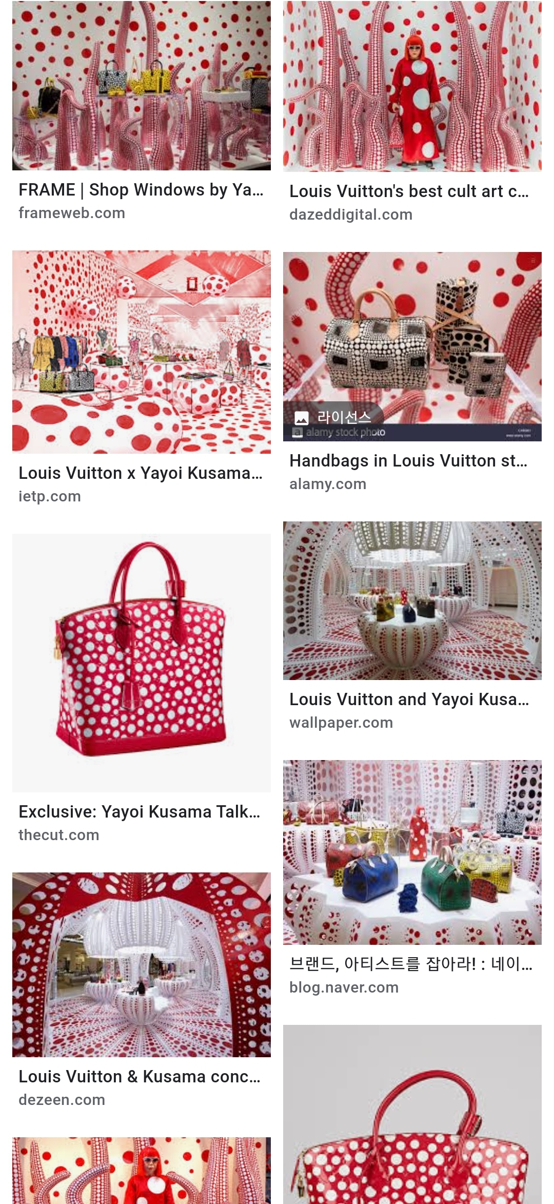 루이비통과 같은 유명 기업과 협업 활동을 통해 대중성까지 갖춘 쿠사마 야요이는 아직까지 활동 중으로 현대 미술계에 살아 있는 전설과도 같습니다. 한때 쿠사마 야요이를 떠올리는 노랗고 빨간 도트(점)가 찍힌 제품들을 본 기억이 납니다.