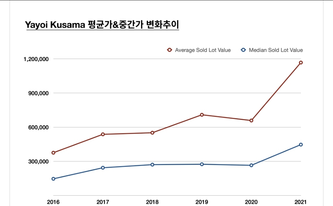 ① 쿠사마 야요이 작품의 가격 상승 추이