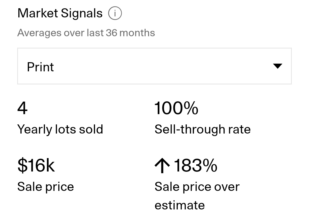 페인팅, 프린트, 조각 작품 유찰이 없고, 작품의 평가액보다 200% 이상에 팔린 것을 보니 그의 인기가 얼마나 대단한지 보여줍니다.