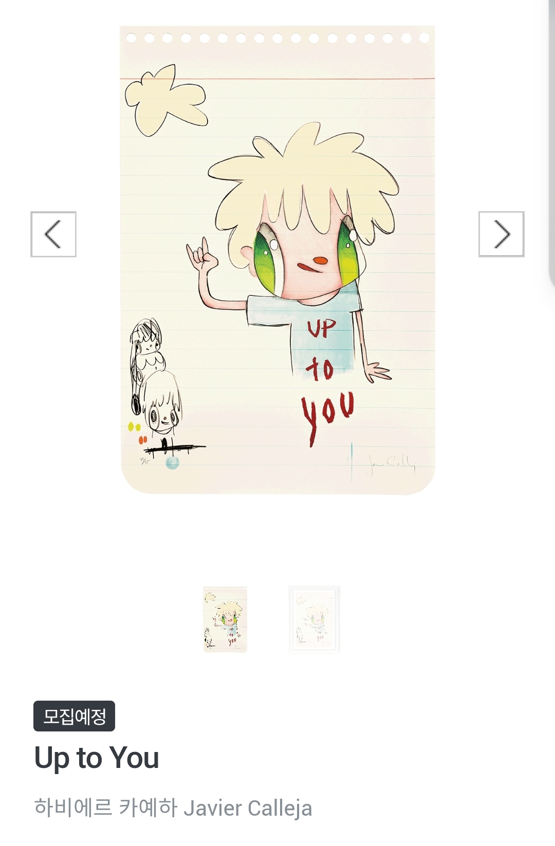 10월 아트투게더의 첫 그림공동구매는 스페인 화가 Javier Calleja (하비에르 카예하)의 'Up to You' 작품입니다.
