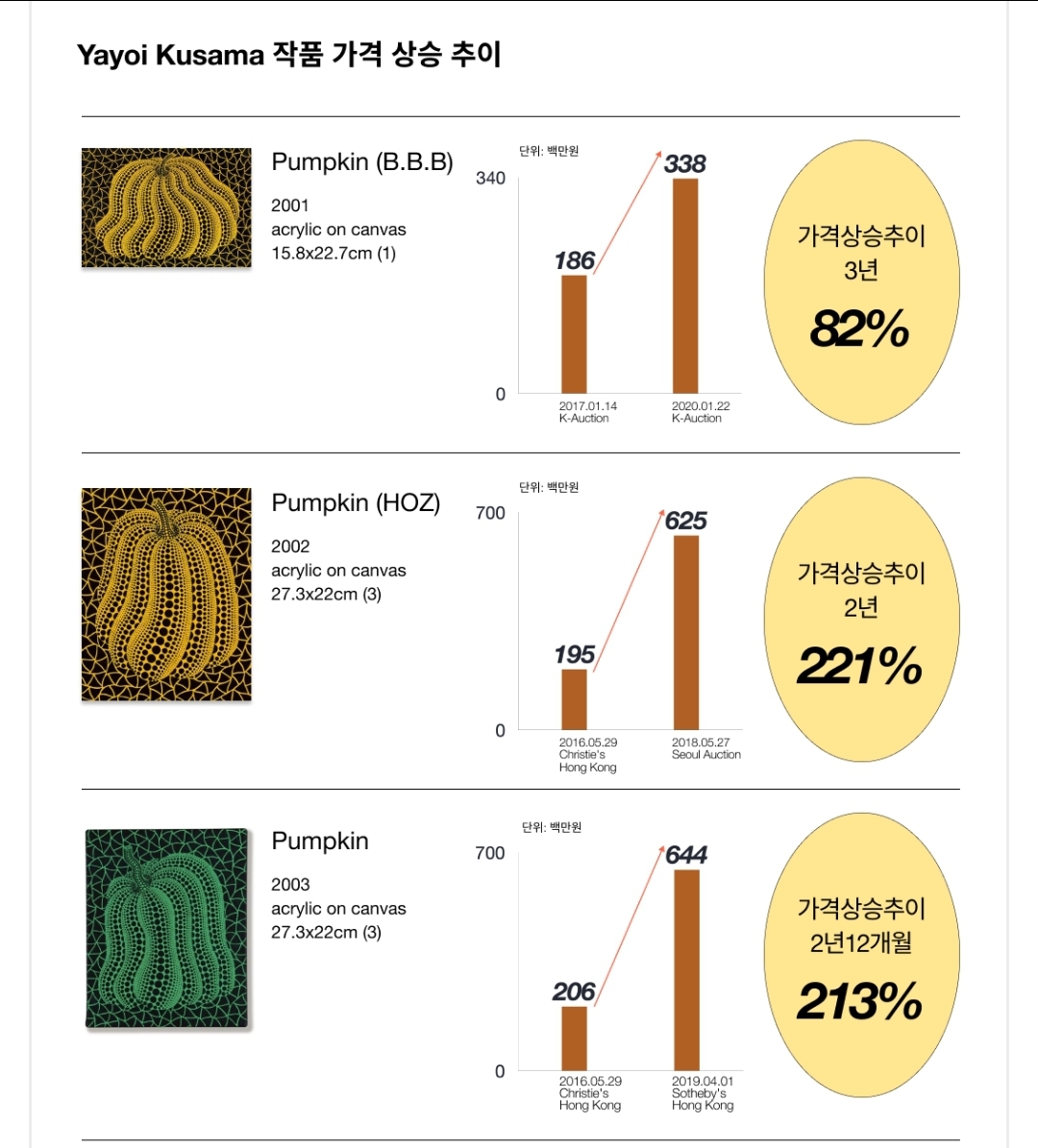 ① 쿠사마 야요이 작품의 가격 상승 추이