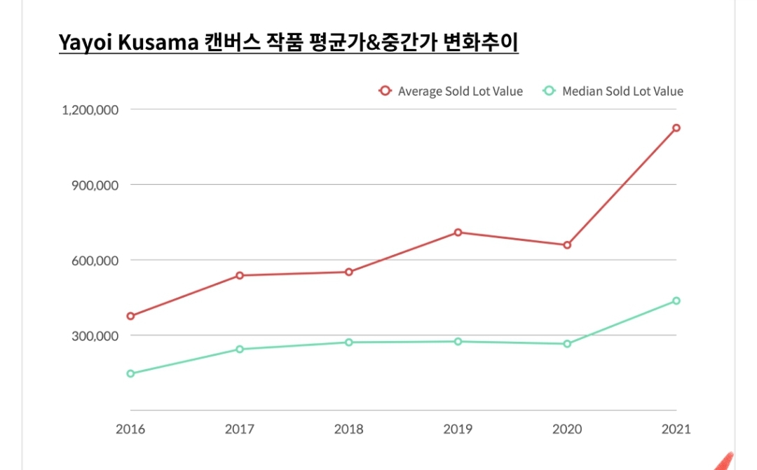 쿠사마 야요이님의 작품 가격 상승 추이를 보면 입이 벌어집니다.
