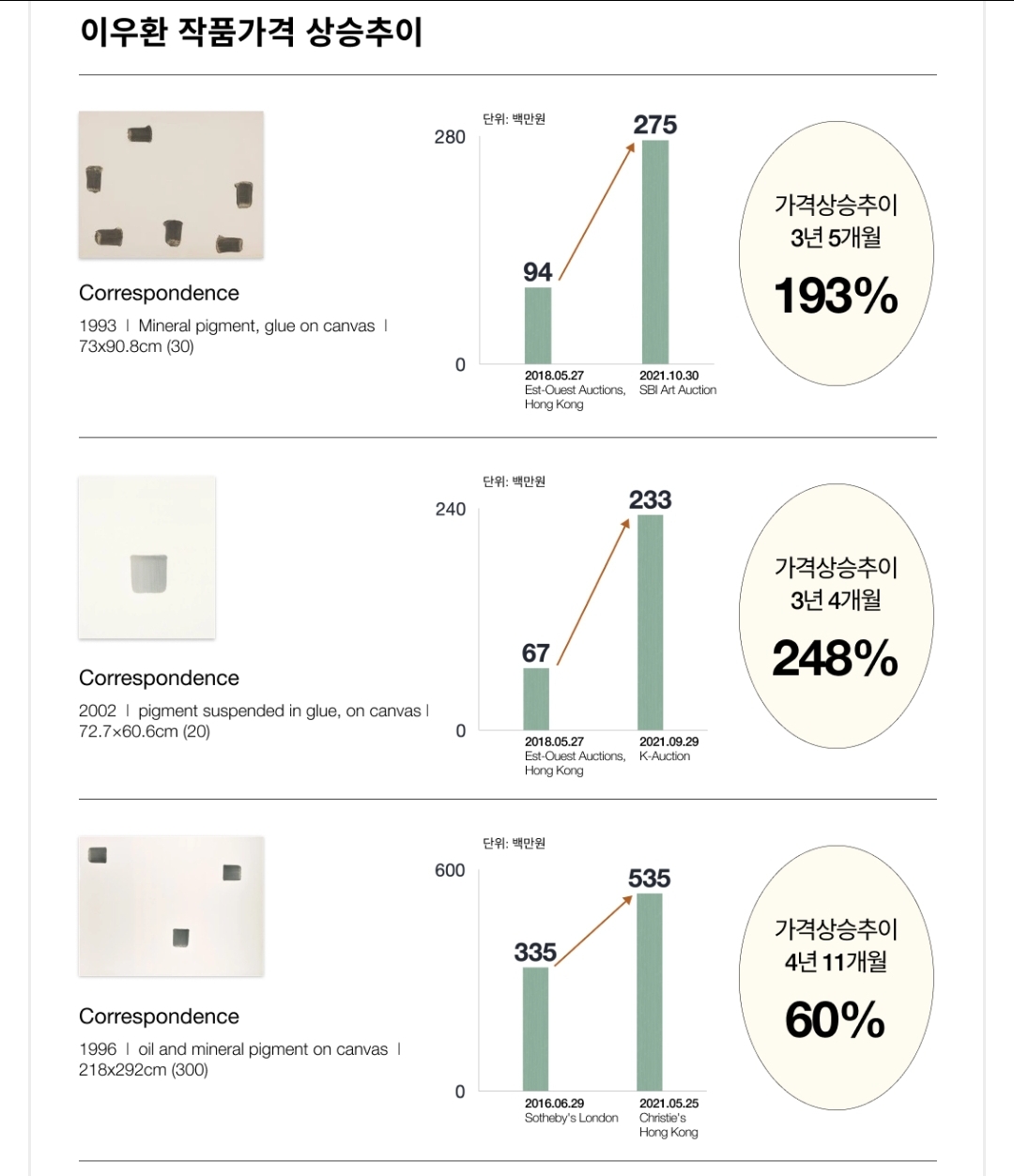 ① 이우환 작품 가격의 상승 추이 및 안정적인 가격 상승세