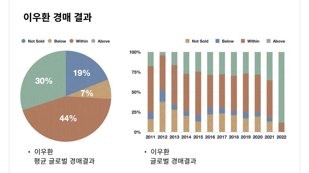 ③ 2021년 글로벌 미술시장에서 94%의 높은 낙찰률과 48%의 추정가 상회율