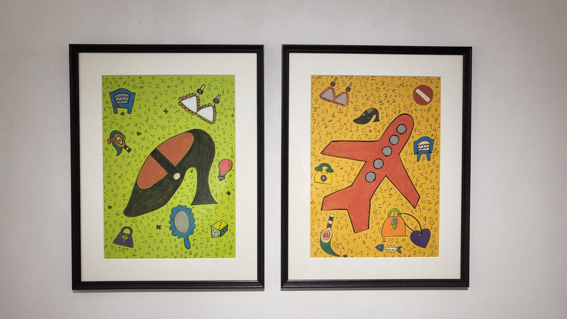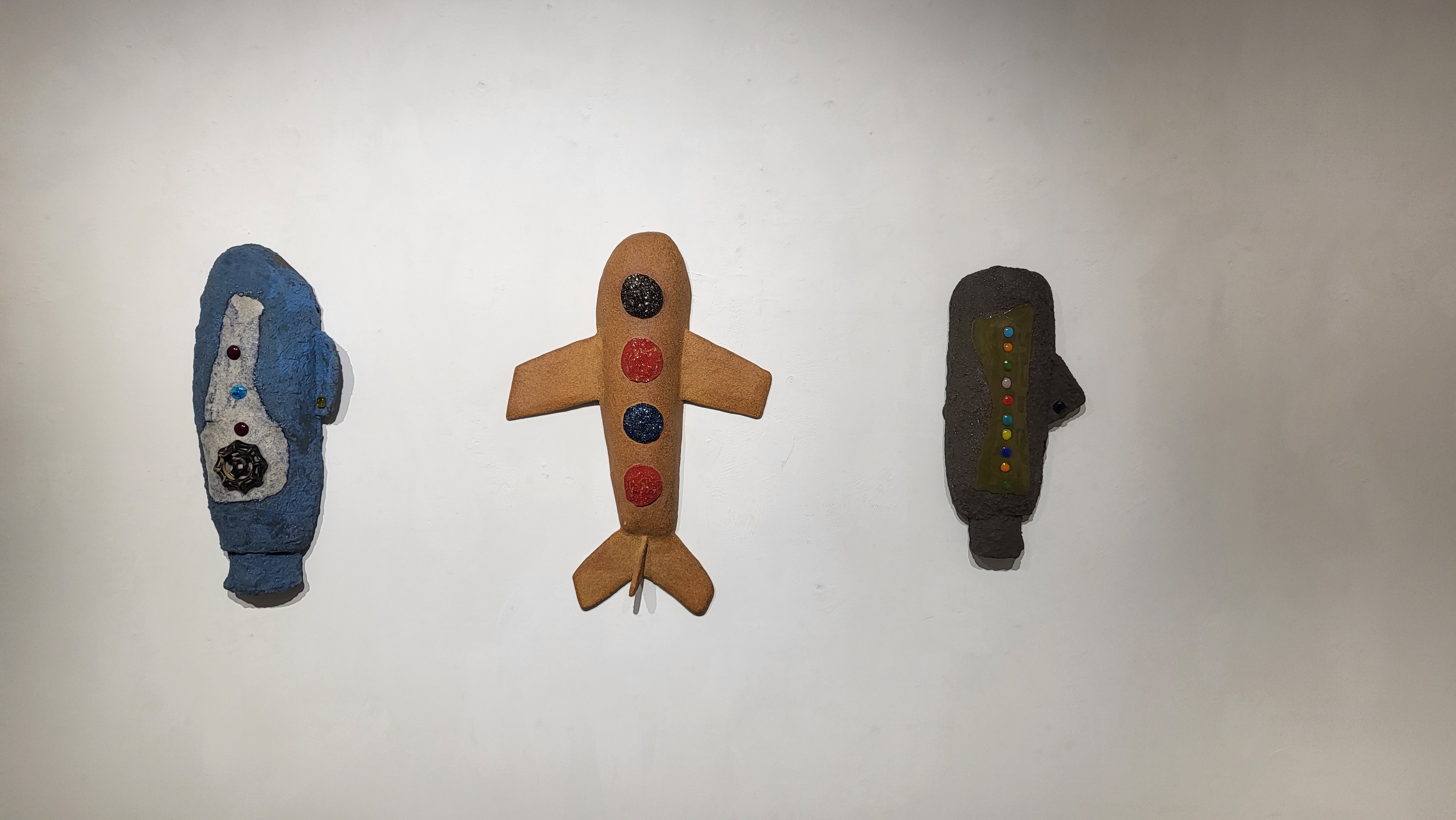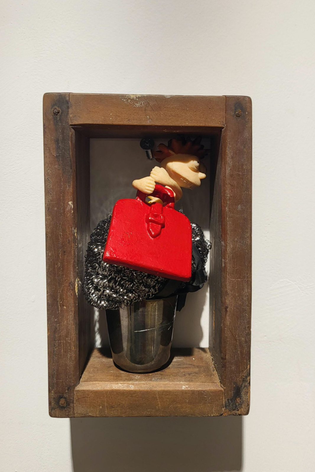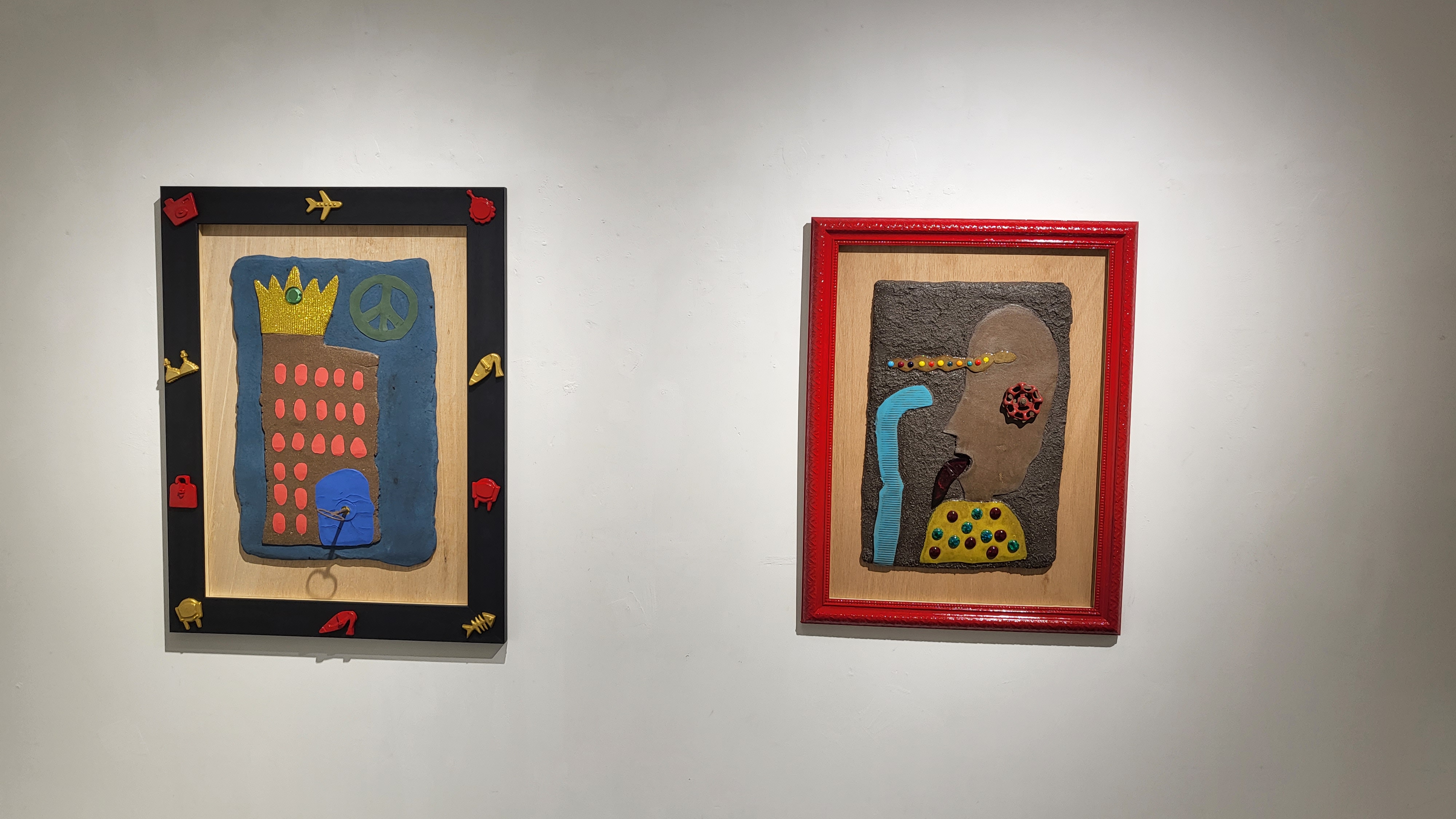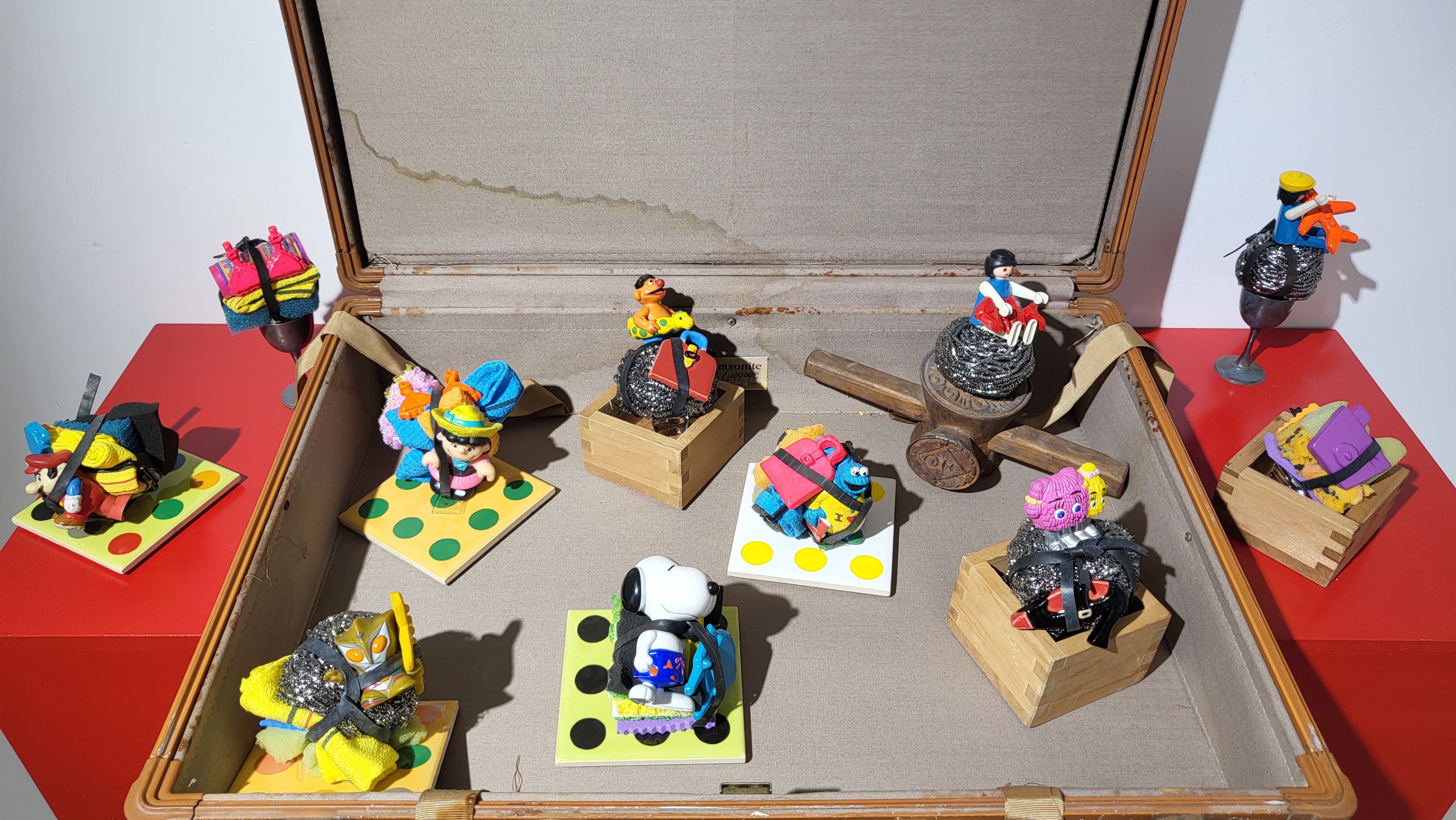 어렸을적 아이들이 가지고 놀던 그런 장난감, 기구와 같은 요소들이 작품에 많이 들어간 것처럼 보입니다.
