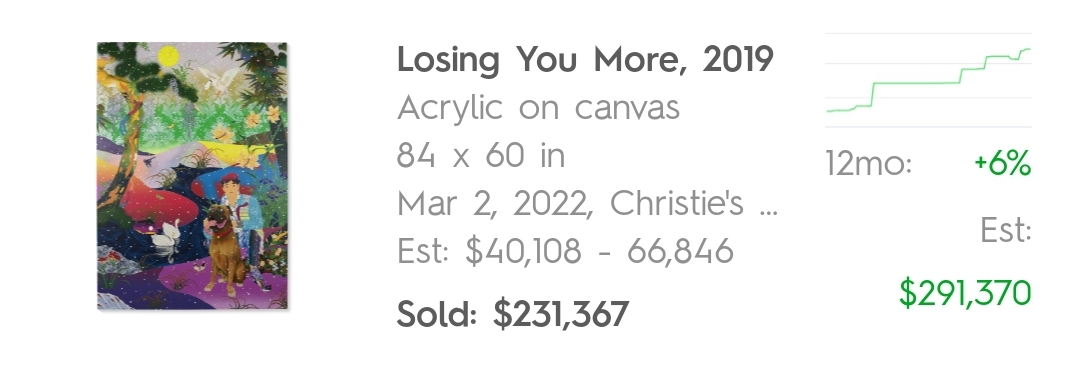 'Losing You More' 작품의 경우 지난 12개월 동안 +6% 상승했네요.