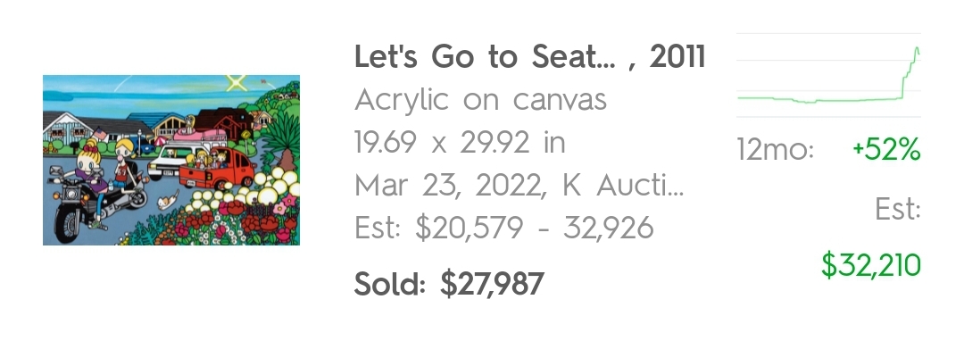 'Let's Go to Seattle!' 작품의 경우 지난 12개월 동안 +52% 상승했습니다.