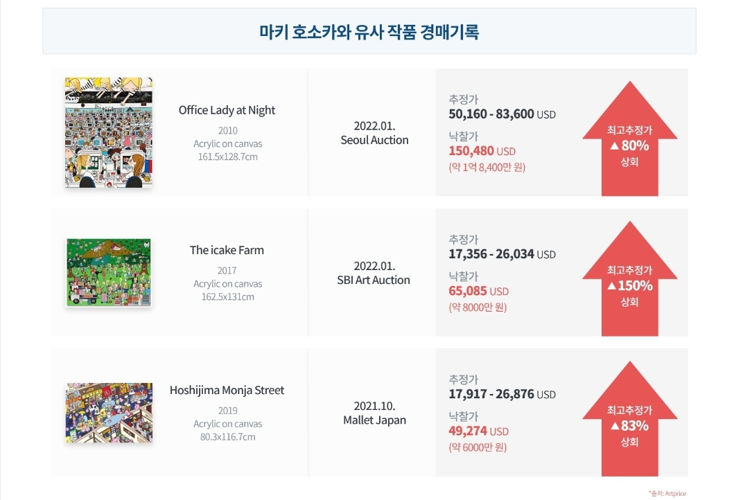 LiveArt에 의하면 지난 5년간 마키 호소카와님의 아티스트 지수는 476% 상승했습니다.