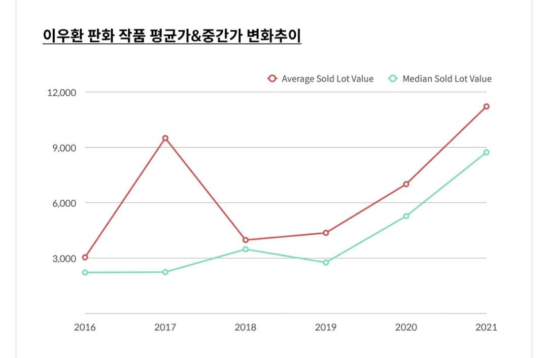 21년 9월 기준 낙찰률 90%, 유찰율 9%를 기록중으로, 특히 가격 측면에서 진입 장벽이 높은 캔버스 작품 대신 판화 작품이 MZ 세대를 필두로 한 신진 컬렉터들에게 인기가 높다고 하네요.
