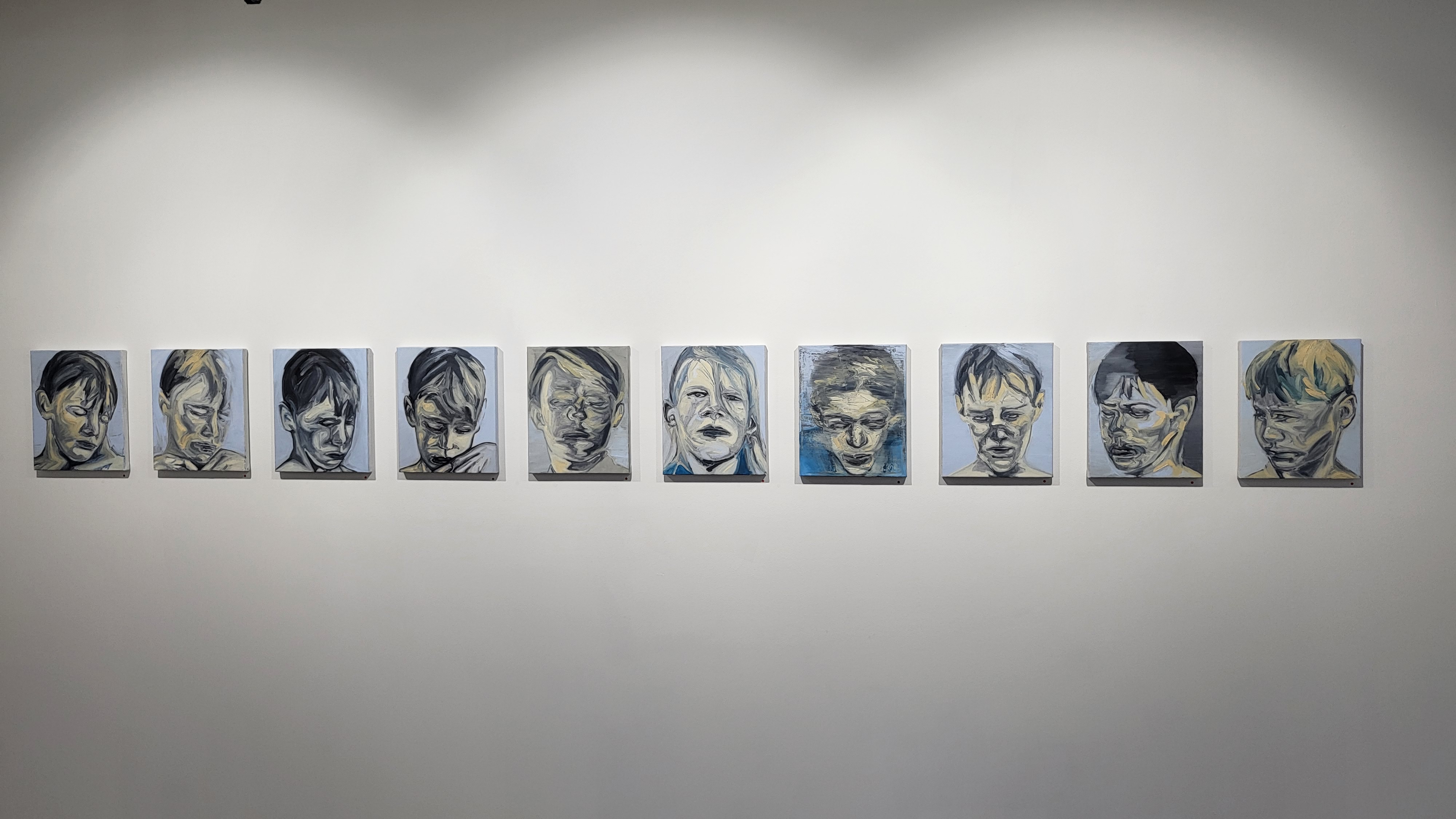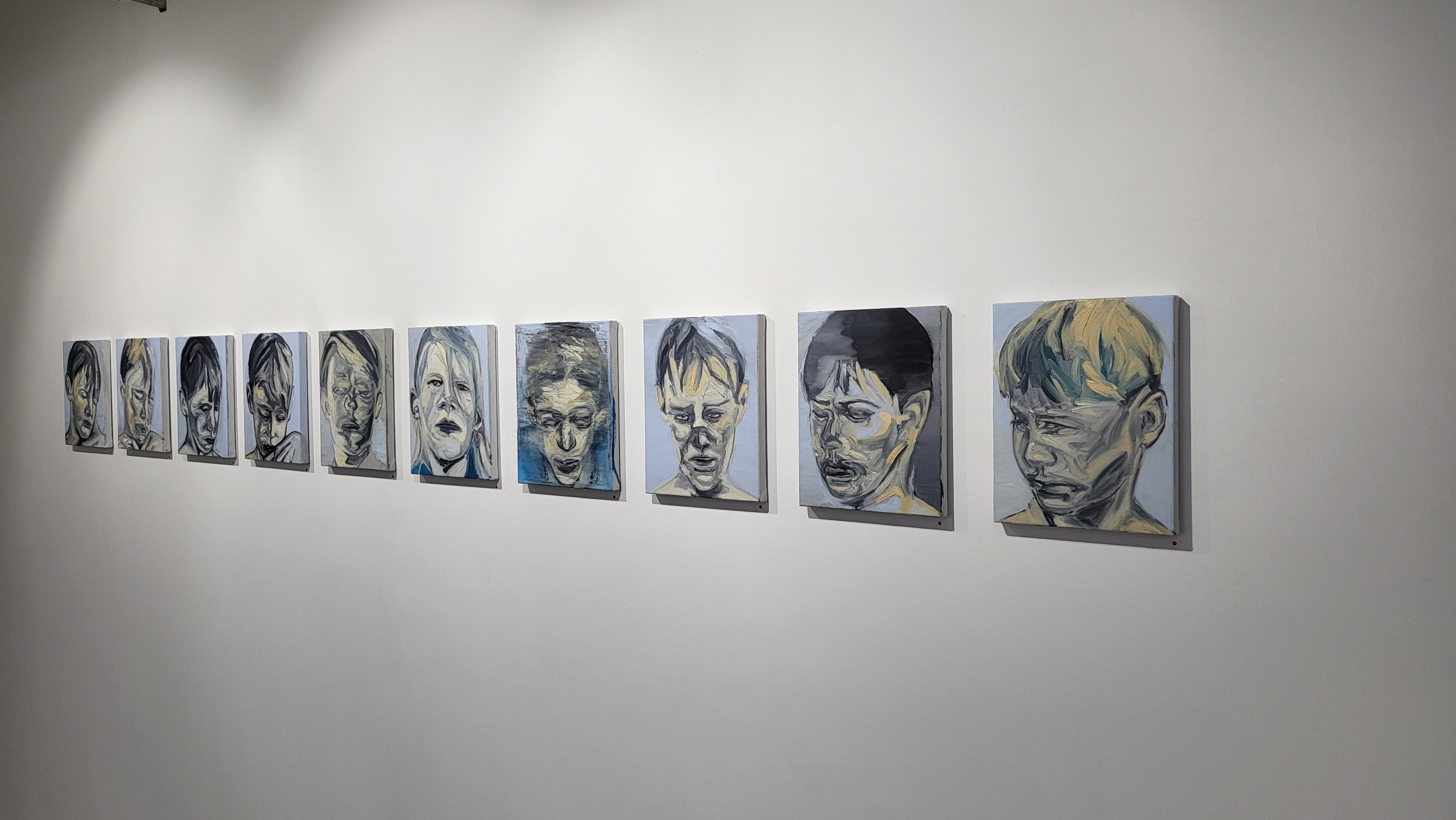 이번 전시의 작업들은 작가의 기억 속 어딘가 고립되어 있던 형상들을 재현한 작업들입니다. 표현된 인물 (아이들) 또한 성별도 국적도 모호한 우리가 알지 못한 곳에서 나타난 사람들이며 앳된 아이들의 모습들은 마치 장난스러운 게 보일지도 모르지만 어딘가 위협적 이면서도, 방어적으로 비춰 지고 있습니다. 작가가 표현한 총의 이미지는 위협하기 위한 매체이기보다는 ‘무엇’을 목표로 하는 열망, 용기, 희망이 담긴 트리거(Trigger)이며 하나의 장치입니다. 아이들은 주변 환경요소에 많은 영향을 받으며 모든 걸 빠르게 습득 후 표출되기도 합니다. 무표정으로 일괄된 회색의 아이들은 동시대를 살아가고 있는 우리의 모습, 지금 현대 아이들의 모습 모두를 투영하고 하고 있습니다.