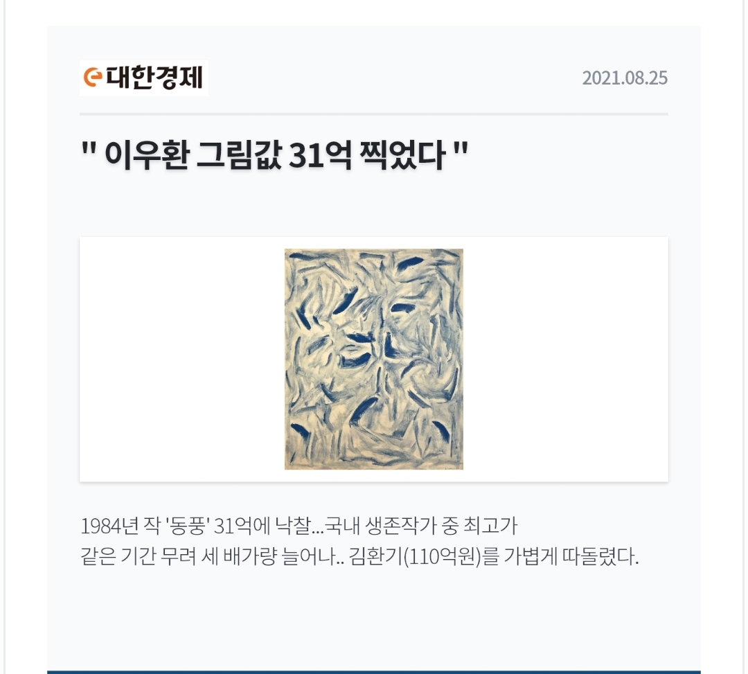 이우환 화백의 작품이 앞으로도 얼마나 더 높은 가격에 낙찰될 지 궁금해 지기도 합니다.