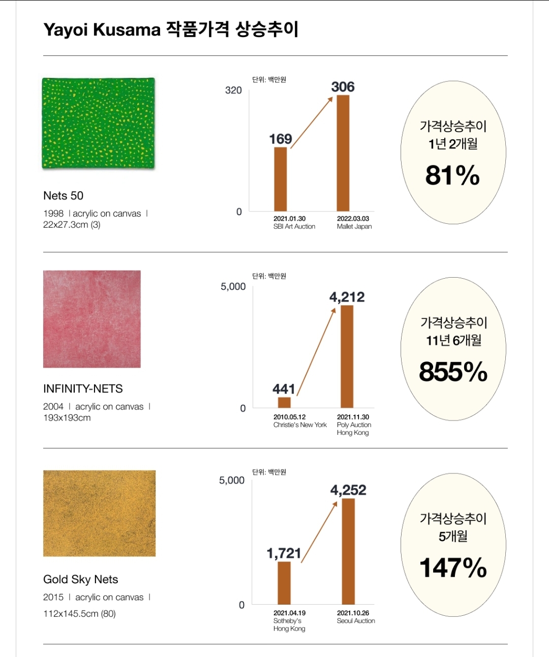 ① 쿠사마 야요이 작품의 가격 상승 추이