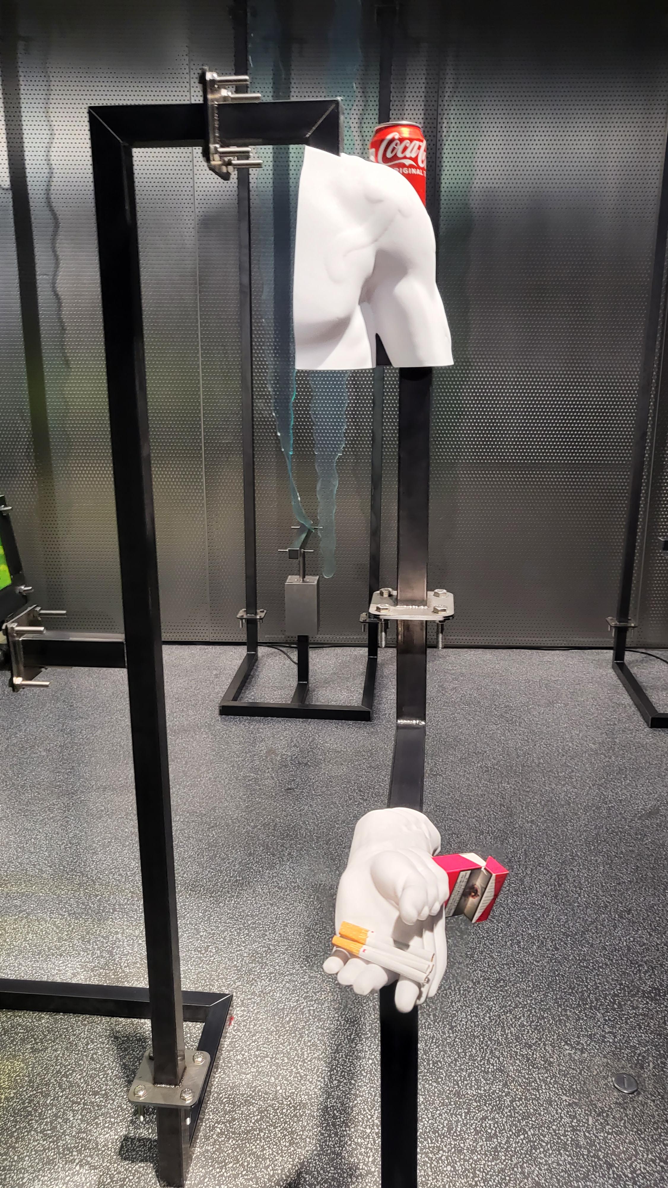 이번 전시에서는 두 점의 신작 <Six Feet Under (Durability Test #6)>(2022)와<The Fabulous Life #2>(2022)를 소개했다. <Six Feet Under (Durability Test #6)>는 주체성을 상실하고 한낱 기능하는 부품으로 전락한 인간의 위상을 마치 내구도 테스트를 당하는 공산품처럼 표현한다. <The Fabulous Life #2>는 생체 정보를 포함한 각종 개인 정보를 실시간으로 수집하고 이를 통해 개인의 취향과 행동 양식을 지배하는 디지털 문명과 다국적 자본에게 포섭된 현대인의 모습을 아케이드 게임처럼 형상화한다.