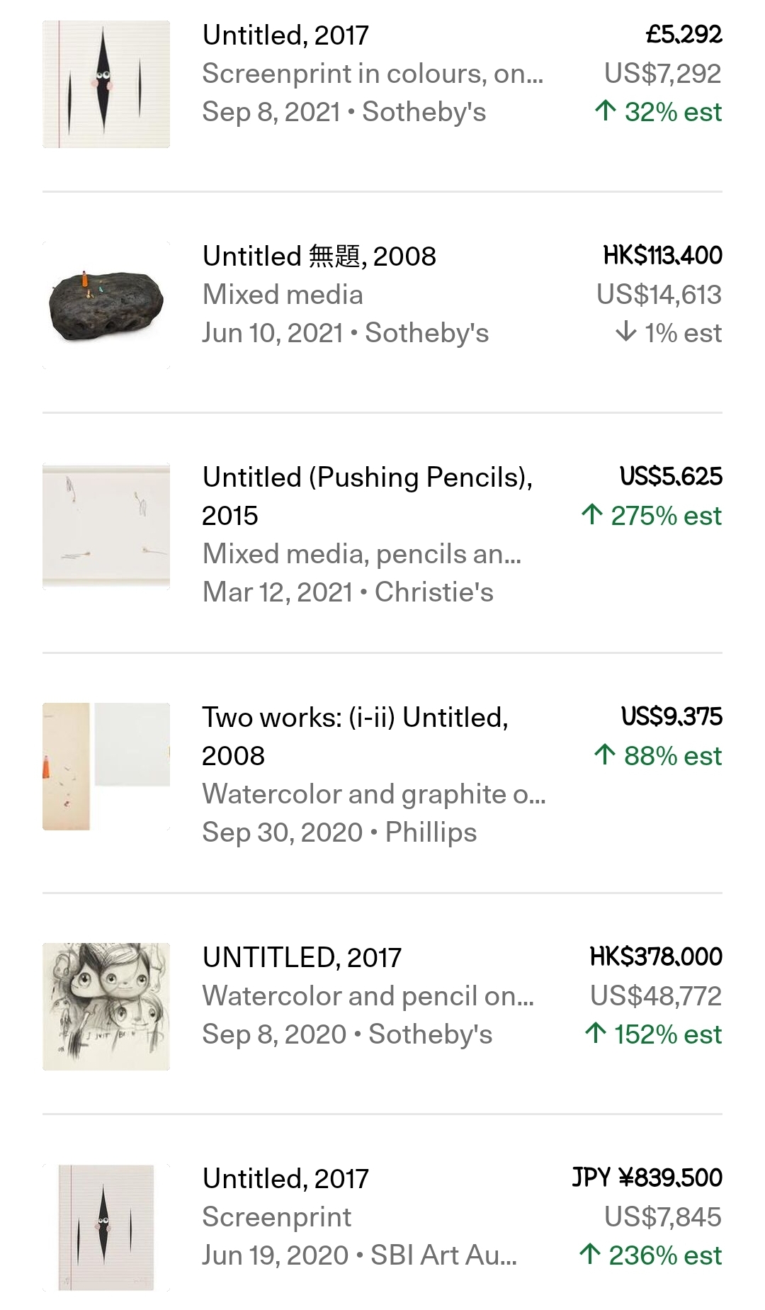 - sculpture 작품은 6점 판매되었으면, 예상 추정 가격보다 97% 이상 높은 수준에서 판매되었습니다.
