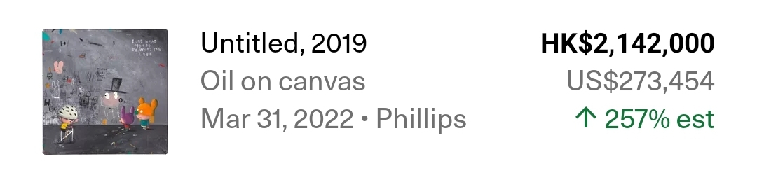 이 작품의 경우 추정가 대비 257% 높은 가격에 거래되었었네요.