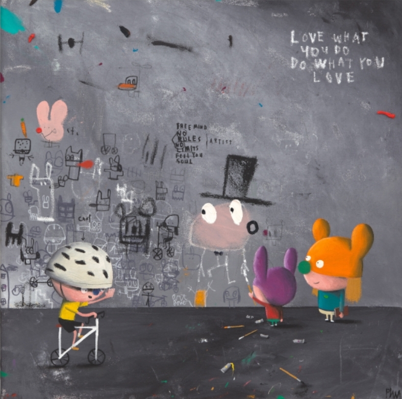 믹스드 미디어 작품에서 Edgar Plans는 낙서와 달리기로 장식된 마우스의 귀와 큰 눈의 만화 캐릭터를 배치합니다. 이 명백한 표시는 Jean-Michel Basquiat 또는 Cy Twombly의 캔버스를 상기시킵니다. 스페인 태생의 Plans는 그래피티, 거리 예술, 만화, 일러스트레이션, 애니메이션 영화를 주요 영향으로 꼽습니다. 그러나 Plans가 "Hero Animals"라고 설명하는 캐릭터는 예술가가 스페인 전역에서 인기를 얻고 수많은 갤러리 쇼를 하는 데 도움이 되었습니다. Plans의 작업은 유통 시장에서 높은 수요를 보였습니다. 그의 그림은 달러 6자리에 판매되었습니다. 생생한 색상의 팔레트와 만화에 기반을 둔 미학에도 불구하고 Plans의 그림은 심각한 주제를 다루고 있습니다. 그의 hero animals와 함께 그는 젠더 폭력, 인종 차별주의 및 시기심을 비판하려고 합니다.
