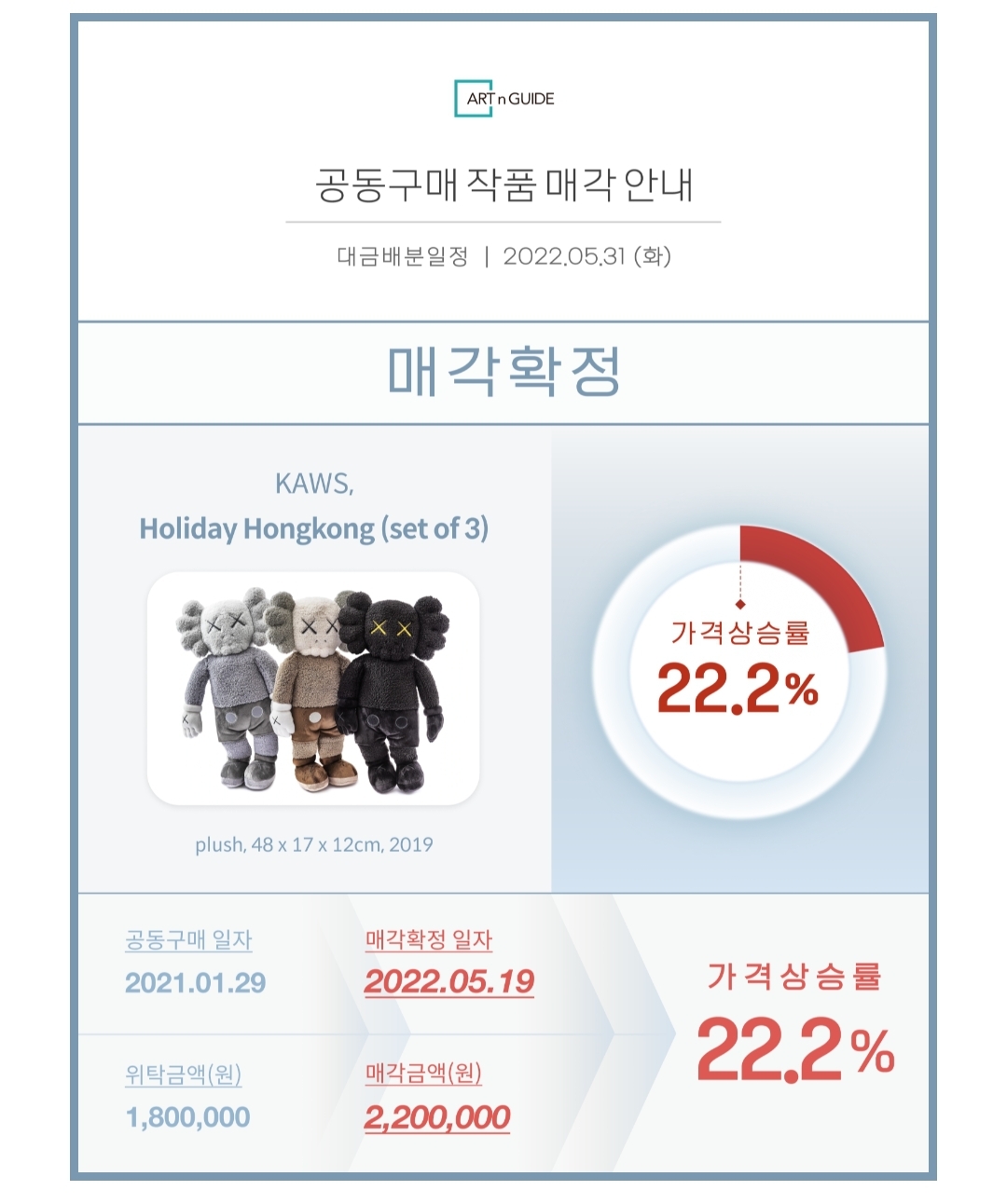 2021년 초반에 공동구매했었던 KAWS의 작품이 매각되었네요.