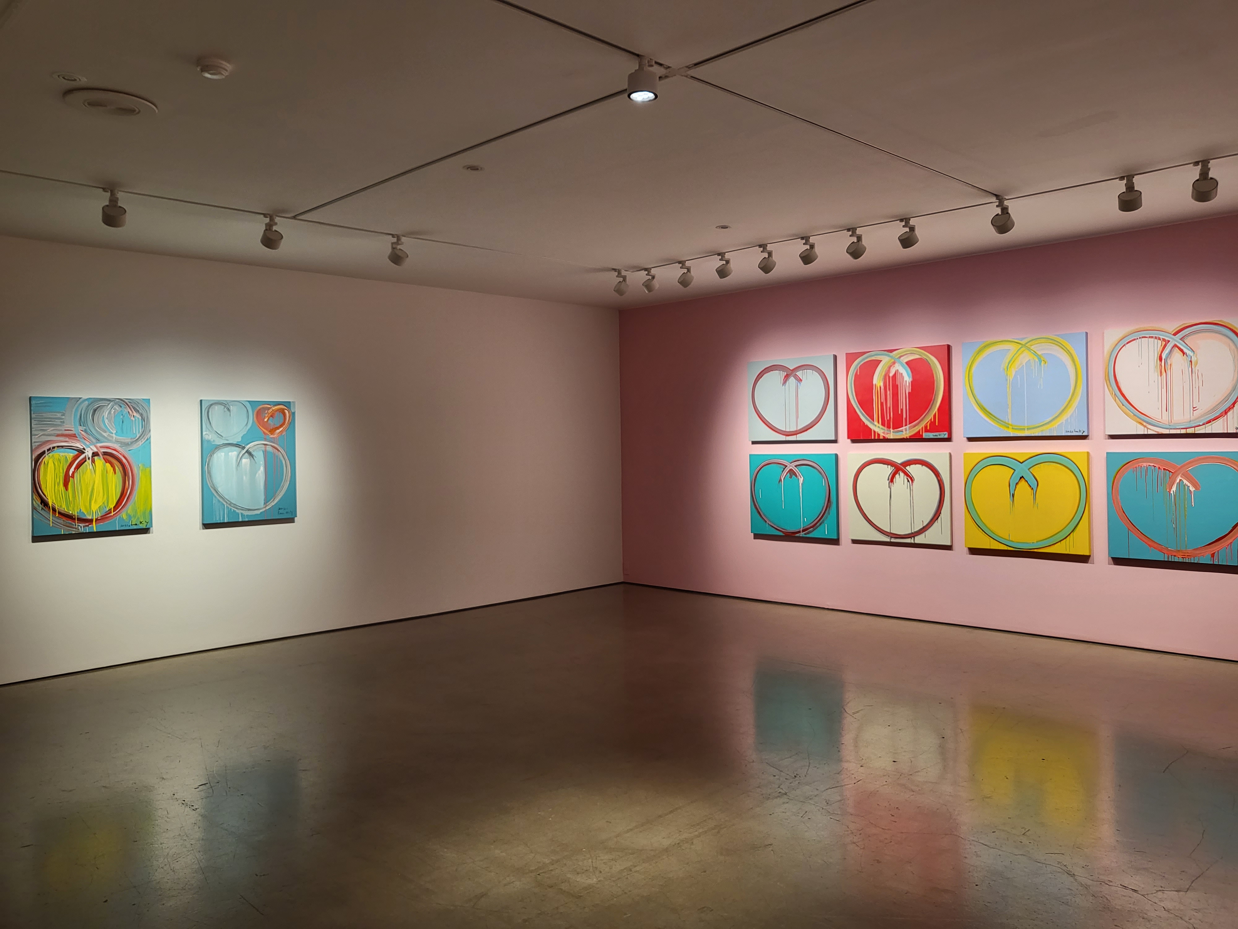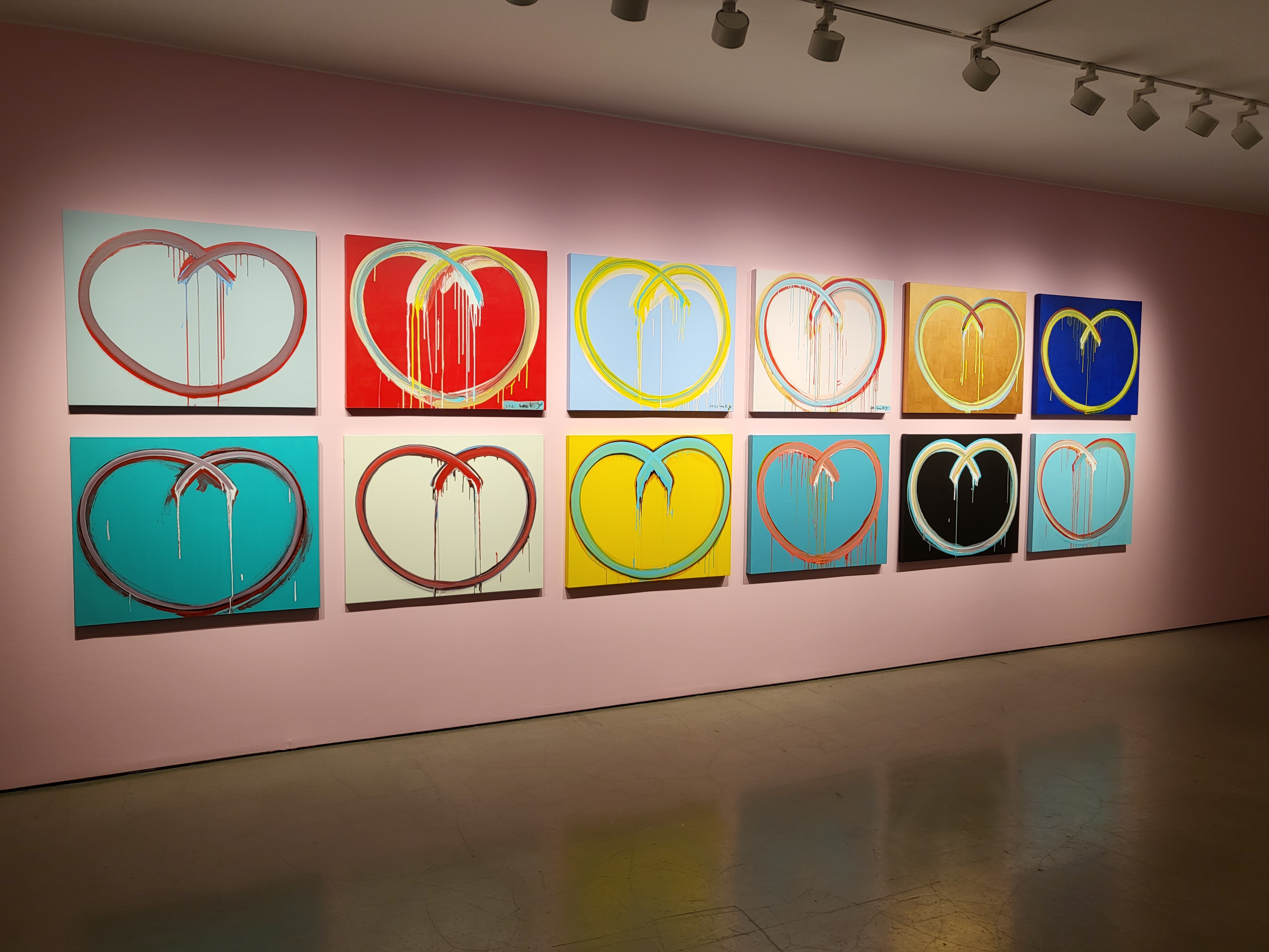 하트 모양의 작품들이 전시되어 있는데 지하해서 본 작품보다 작은 사이즈로 다양한 색깔 조합이 눈길을 끕니다.