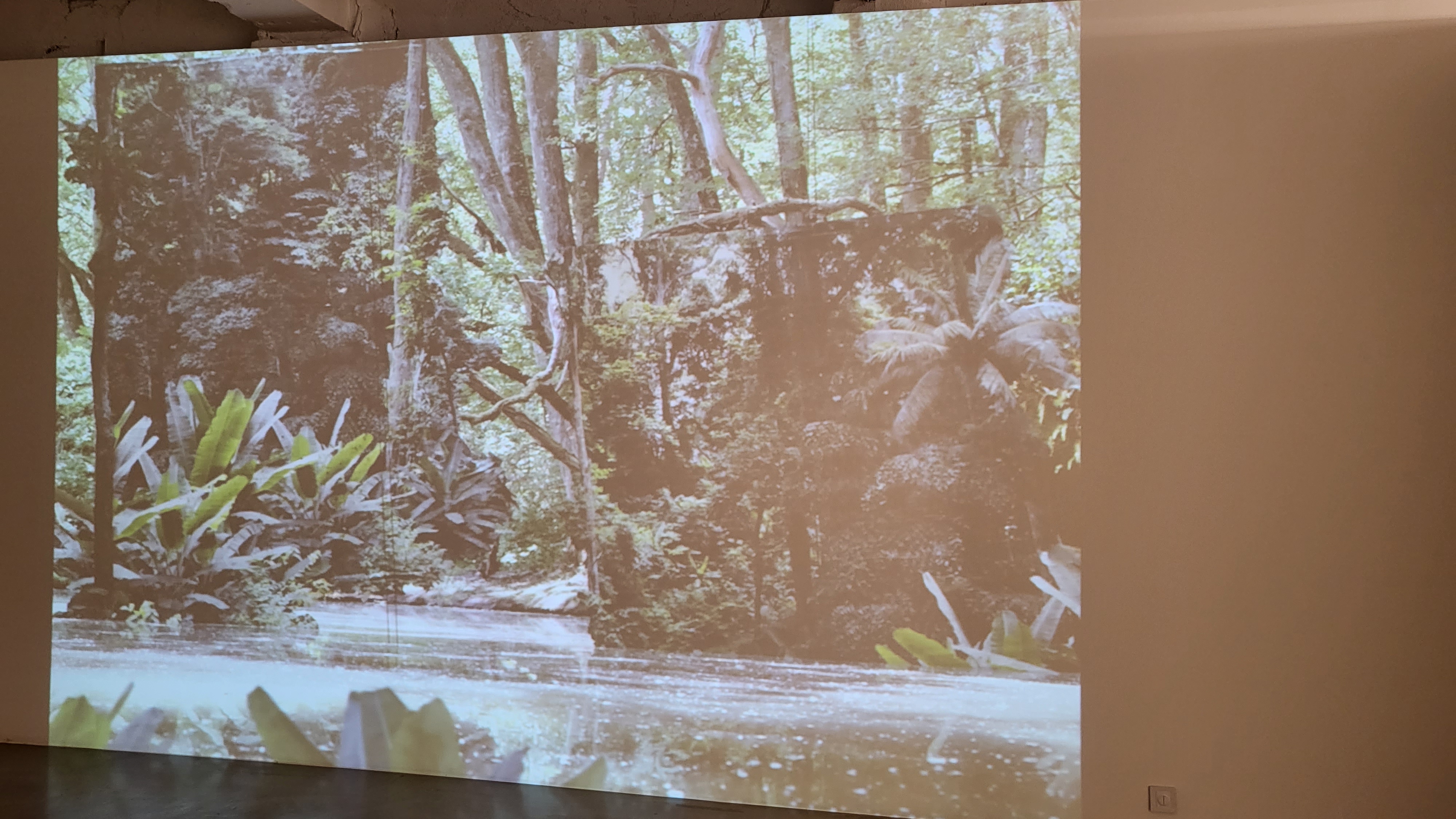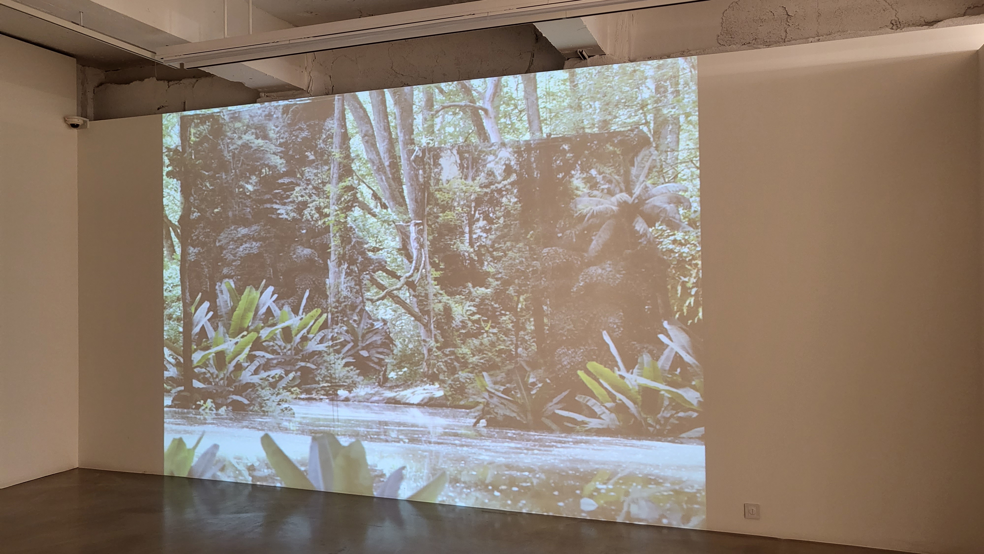Noémie Goudal(b. 1984, France)은 정글 등 특정한 장소에 세트를 설치하고 정교하게 촬영된 영상에 다양한 편집 기법과 음향 효과를 동원하여 초현실과 현실 사이 그 어딘가에 있음 직한 분위기를 자아낸다. 생 나자르 현대미술관(Saint-Nazaire, France)에서 2021년 10월 초연되었던 작품, 〈Inhale, Exhale〉(2021)은 고요한 열대 습지를 배경으로 야자수와 그것과 흡사한 외형의 장치가 수면 위로 나타나고 사라지는 모습을 연출한다. 제목에서 유추되는 대로 ‘들숨(Inhale)과 날숨(Exhale)’의 인터벌에 따라 삐걱거리는 사운드가 덧입혀진 영상은 초창기 연극의 수동 무대장치를 연상시키며 기괴한 낭만을 불러일으킨다.