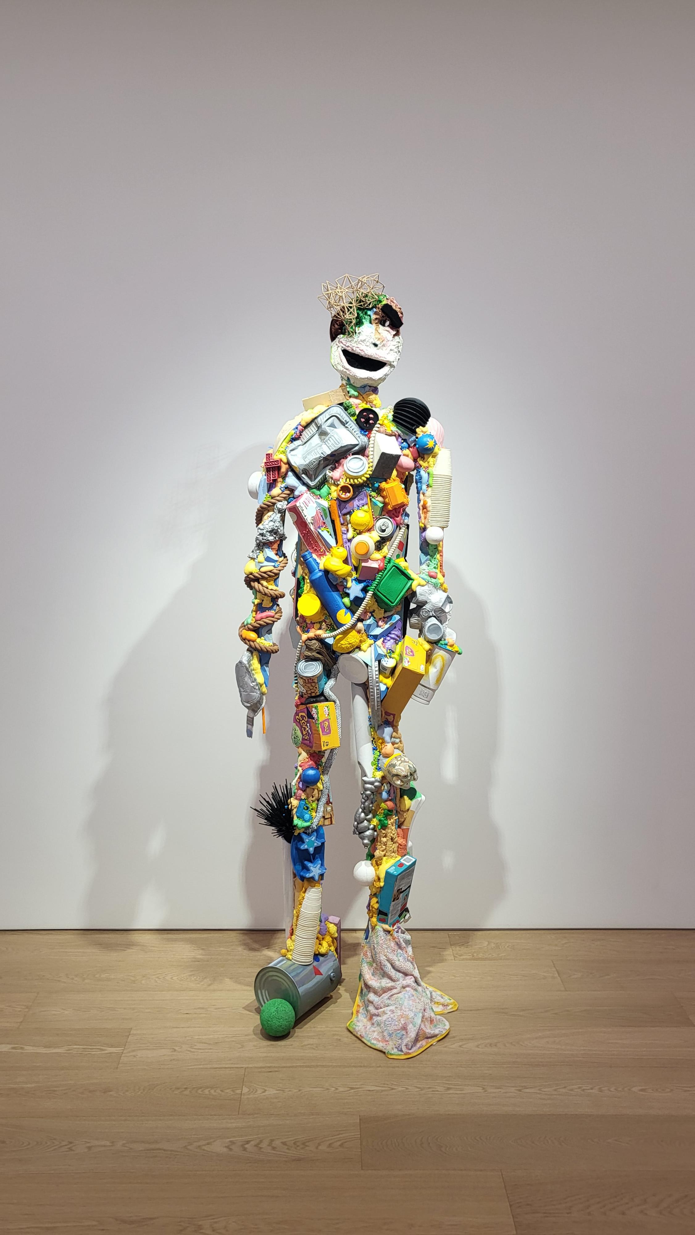 갖가지 상품들로 만들어진 작품입니다.