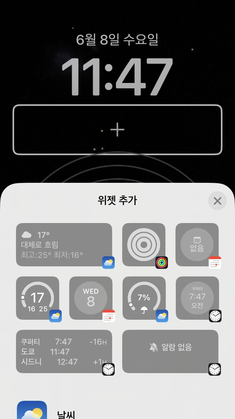 홈화면과 투데이 뷰(Today View)에서 제공하던 위젯을 잠금 화면에서 바로 사용할 수 있습니다.