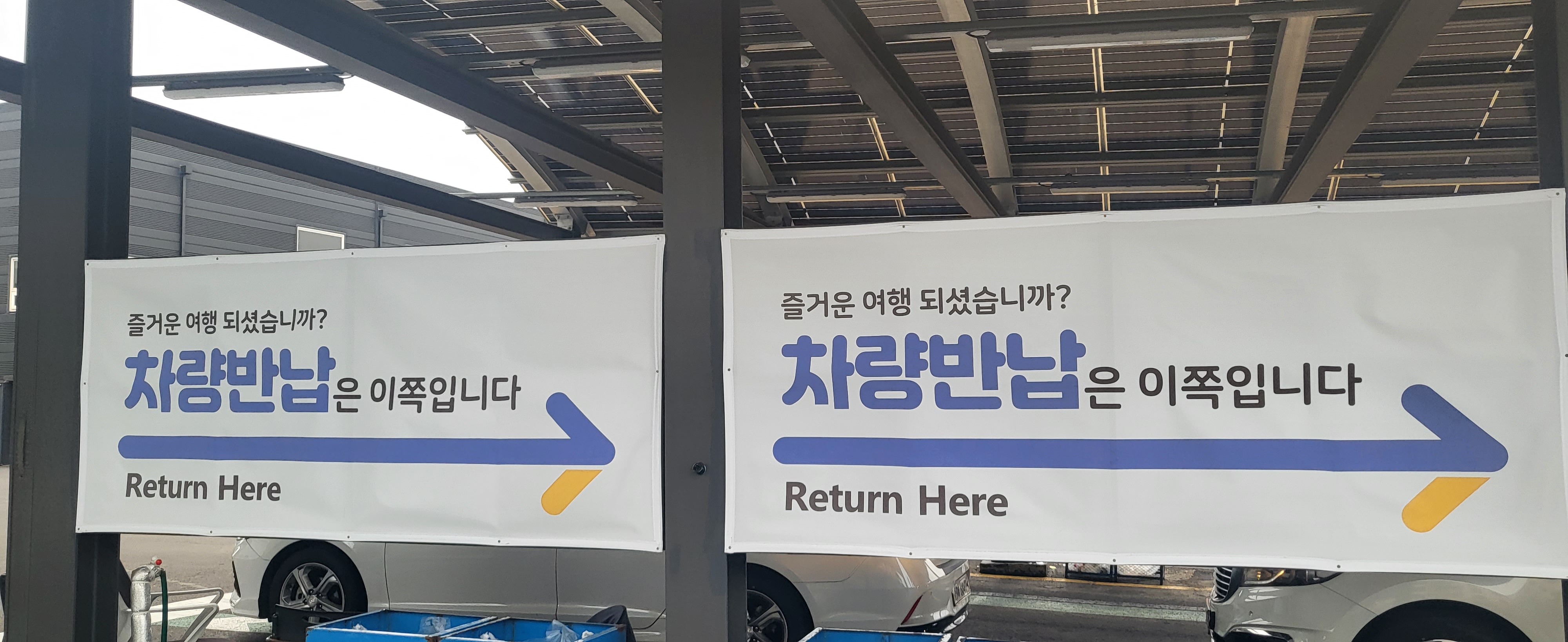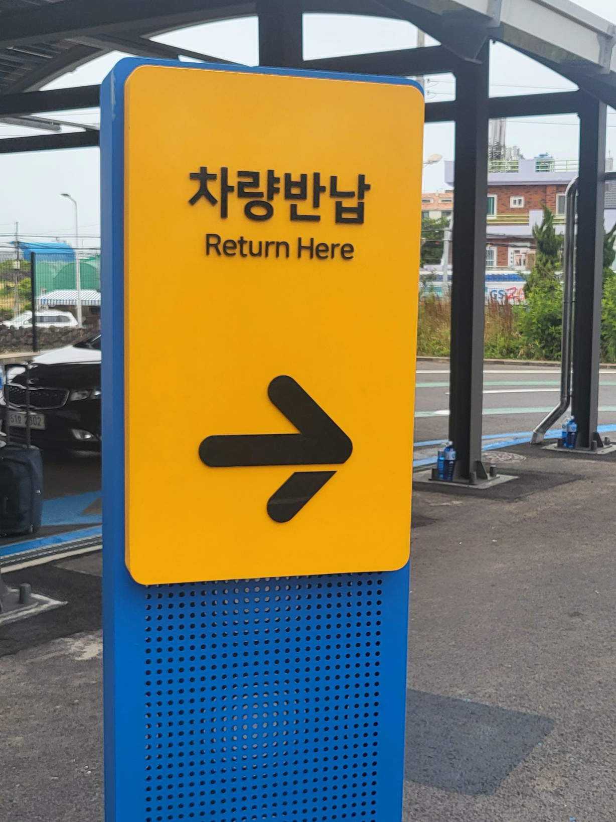 빌리카 들어가자마자 차량반납 하는 곳 표시를 따라 이동합니다.