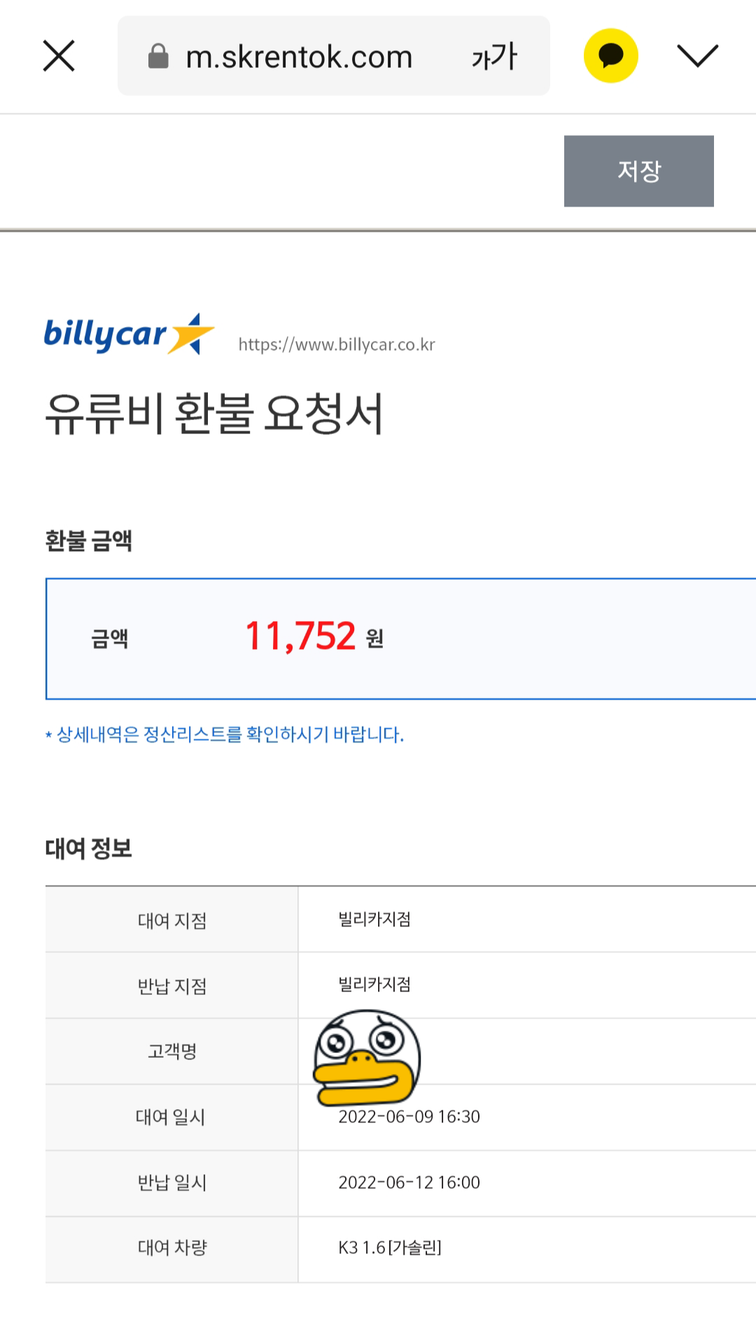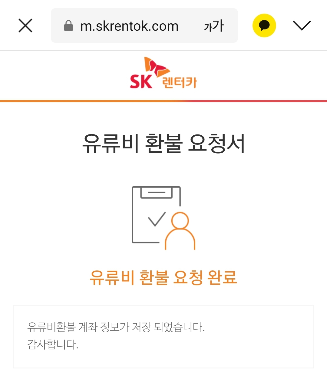 카카오톡으로 유류비 환불 요청서 메시지가 오는데 반드시 정보(은행, 계좌 정보)는 정확하게 입력해야 합니다.