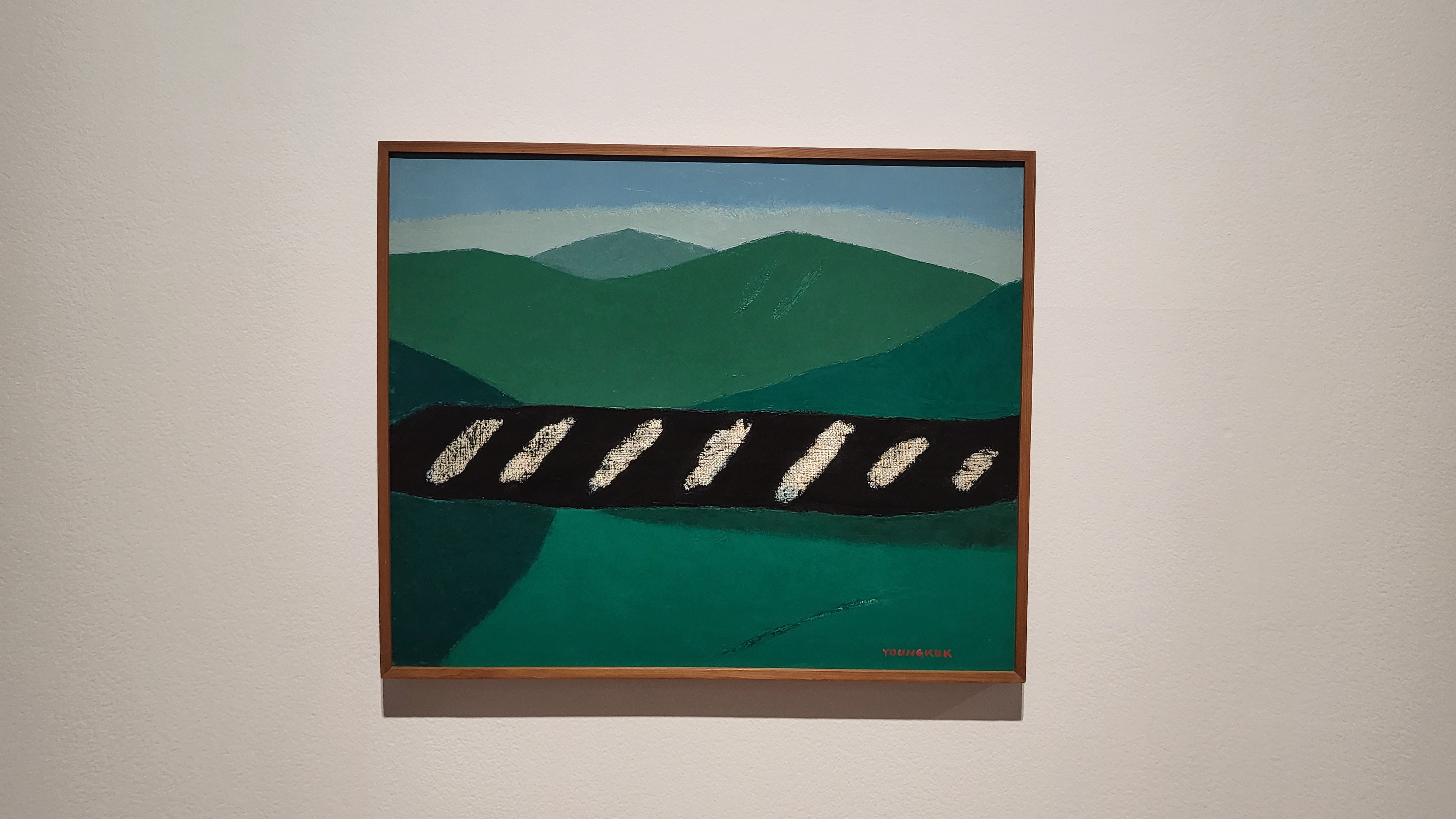 유영국 화백의 작품들을 보고 있으면 우리가 보고 있는 자연 산, 들, 강 등을 최대한으로 단순화 시키고 그 중에 부각하고 싶은 부분들을 큼직하게 다른 색으로 표현한게 아닐까 생각이 듭니다.
