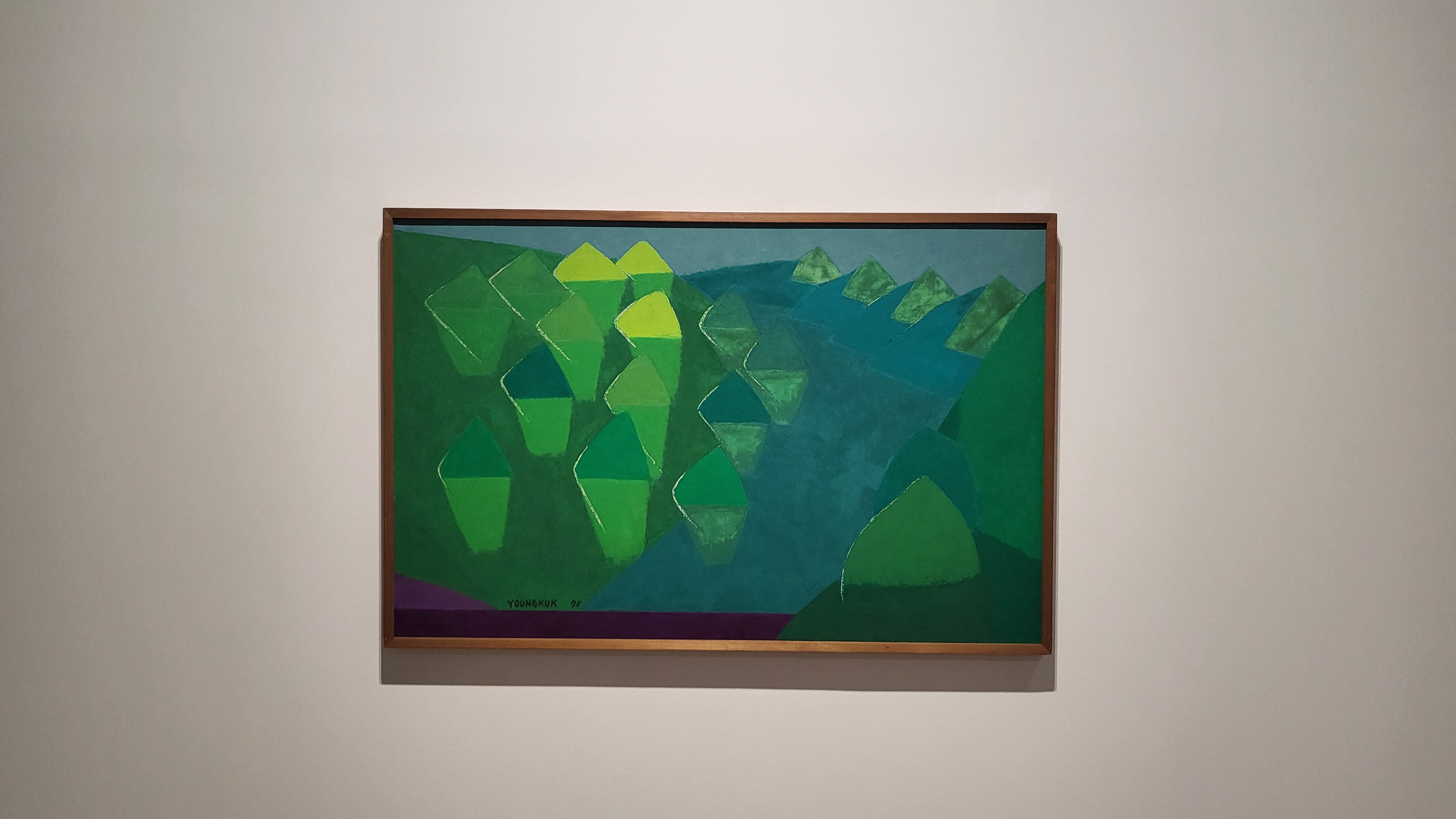 이번 전시 《Colors of Yoo Youngkuk》은 산과 자연을 모티브로 강렬한 원색과 기하학적 구도로 절제된 조형 미학의 정수를 보여주는 유영국 작품의 예술사적 의미를 조망하는 자리다. K1에서는 작가의 대표작 및 초기작을 중심으로 유영국 세계관의 쇼케이스를 보여준다. 그중 창을 통해 삼청동 풍경을 면한 앞쪽 전시장은 유영국의 색채 실험과 조형언어를 간결하게 파악할 수 있는 대표작들로 꾸려진다. 안쪽에 위치한 전시장은 고유의 색채와 추상 구도를 통해 독자적 미학과 스타일을 구축하기 시작한 50년대 및 60년대 초중반 작품을 중심으로 구성되는데, 이 공간에서는 특히 자연의 요소를 추상적 형태로 변환해 더욱 단순화된 형태와 유화의 재질감(마티에르)을 살린 작품들을 만날 수 있다.