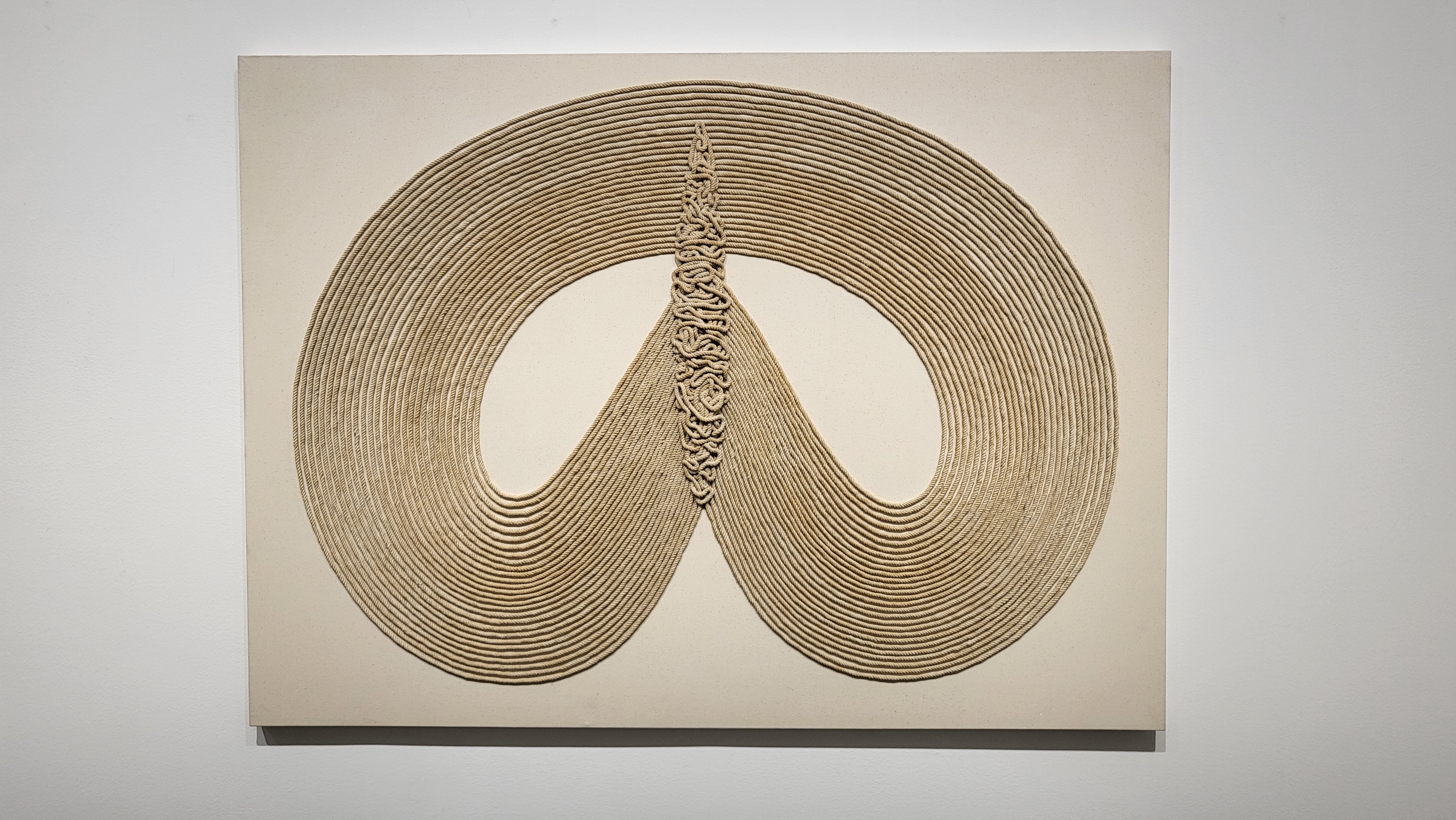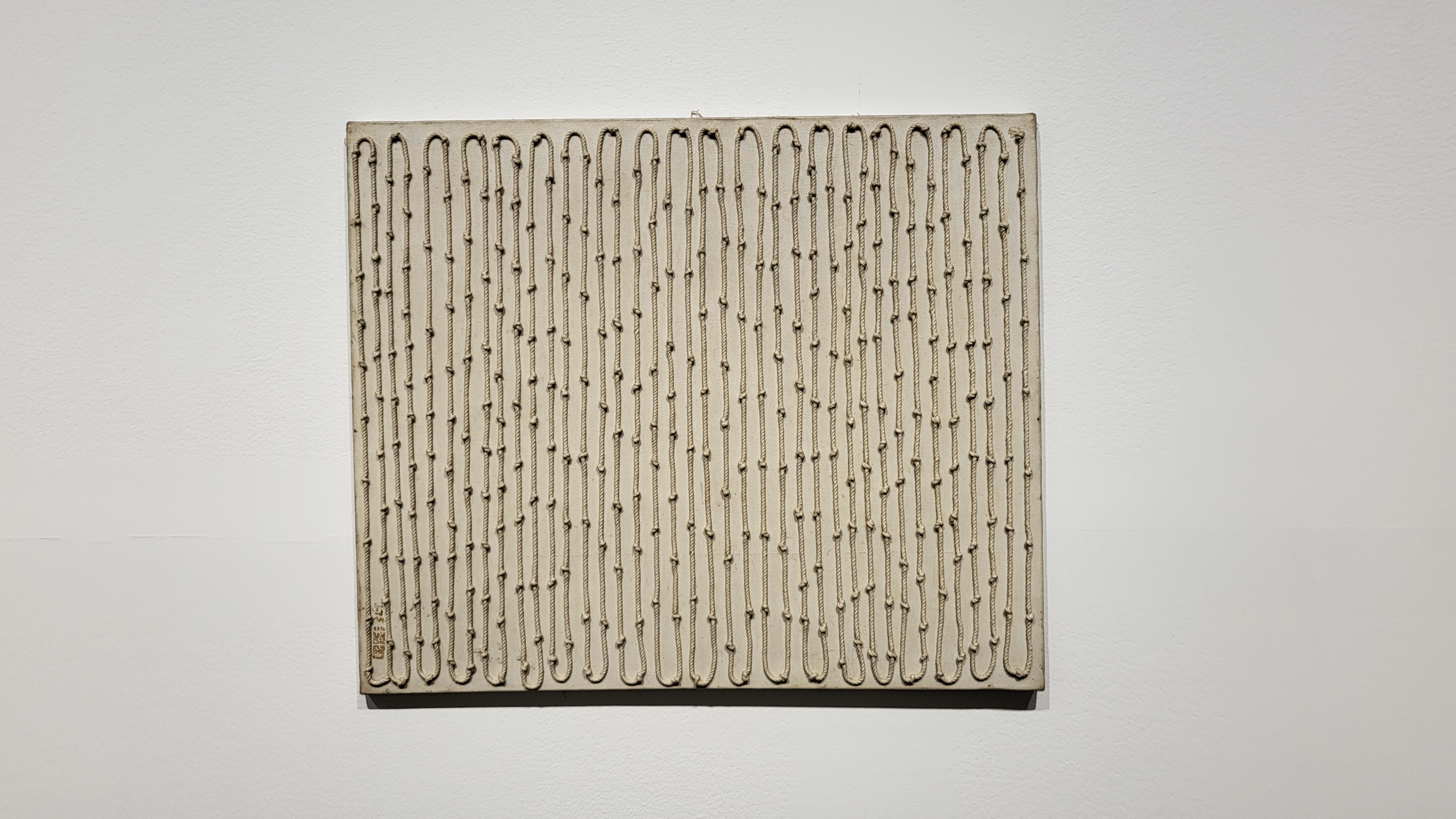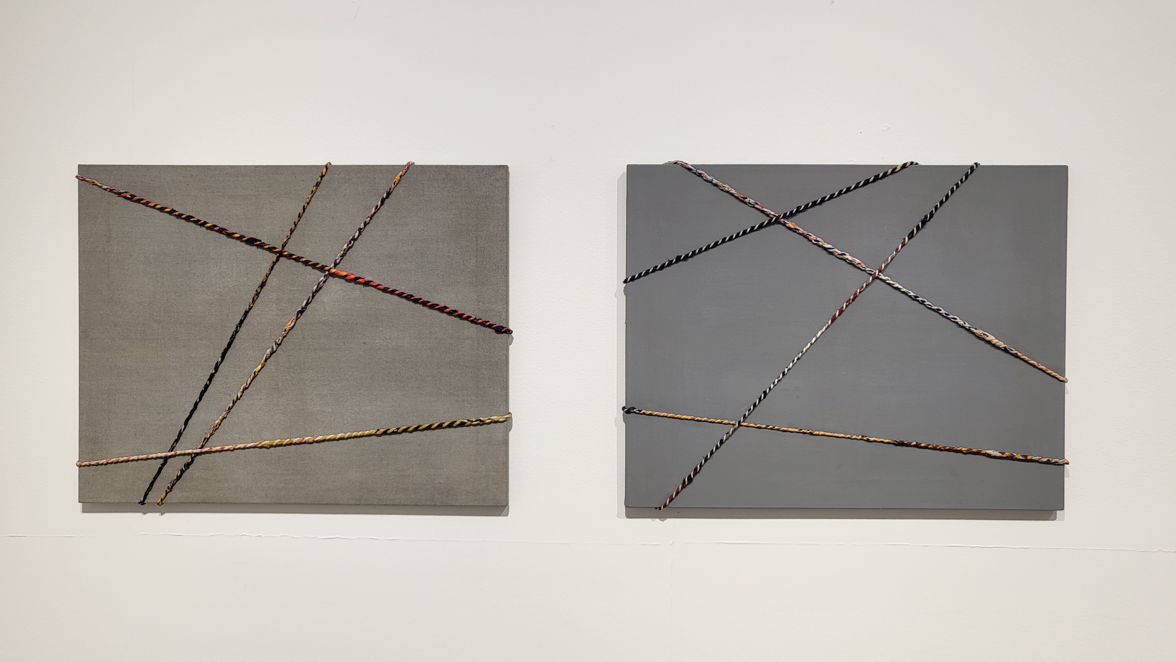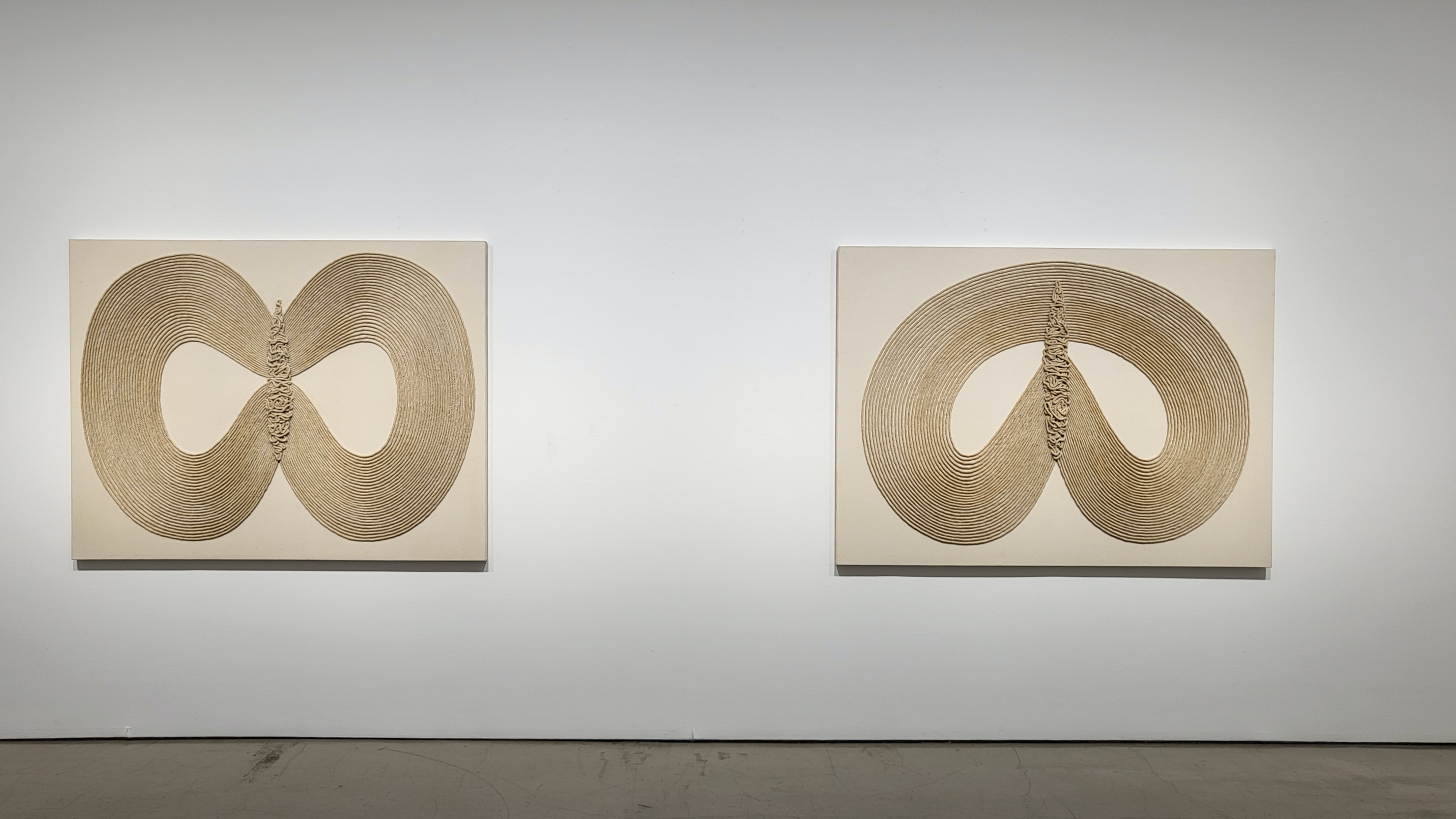1층 전시장은 묶음 연작의 핵심 재료로써 ‘역설의 시각화’를 담당하는 노끈을 활용한 <종이 판화>, <매어진 백자>, <매어진 캔버스>, <노끈 캔버스> 시리즈의 대표작들로 구성된다.