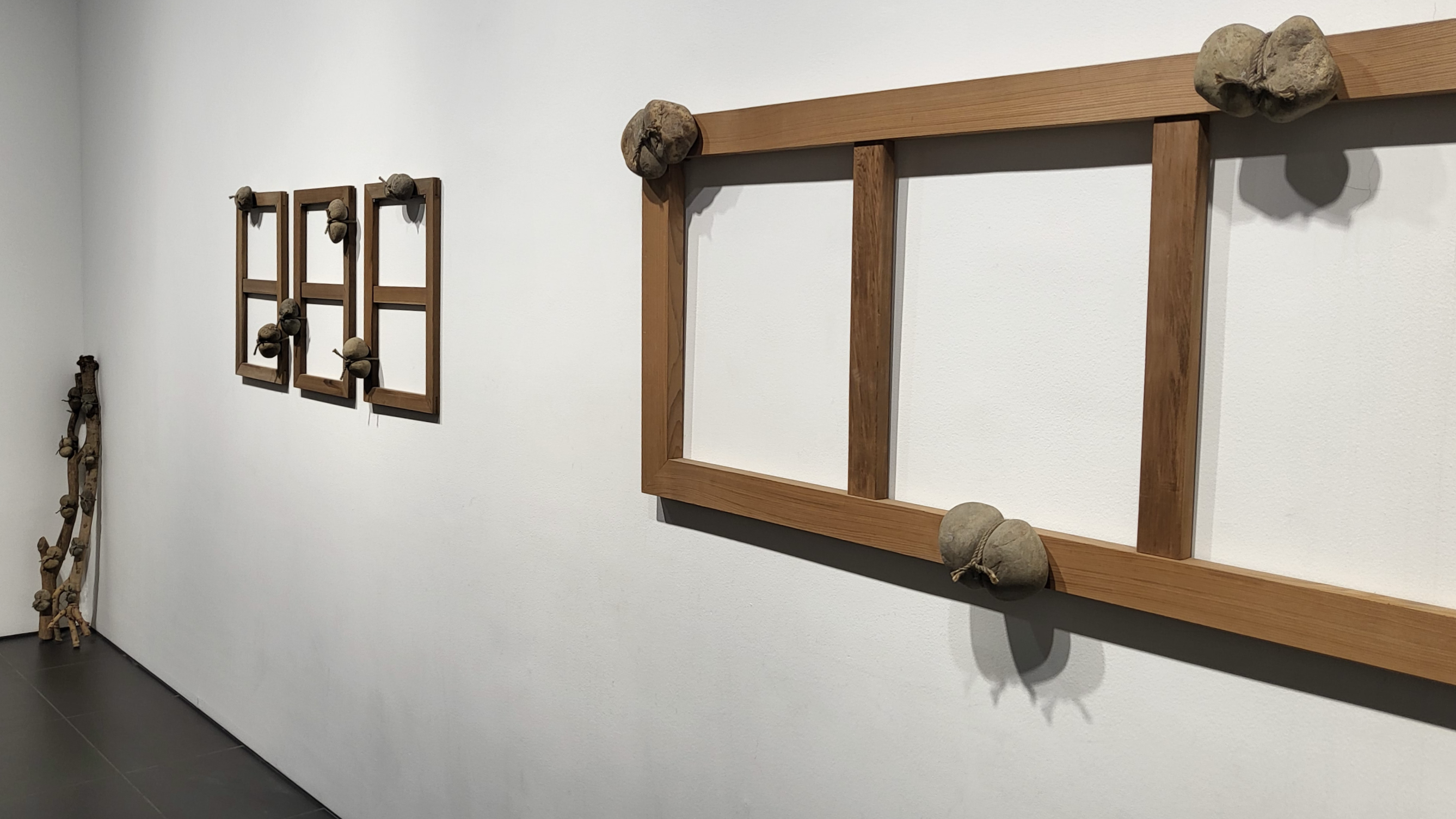 2층 전시장에서는 고서와 돌, 도자기를 오가는 ‘묶음’ 시리즈의 끝없는 변주를 확인한다. 관람객은 수많은 작품이 집적된 작가의 작업실을 닮은 모습으로 연출된 공간에서 형식과 맥락이 서로 이어지되 끊임없이 변화하는 작품의 흥미로운 양상을 조망할 수 있다. 노끈에 매인 흔적을 선명하게 드러내는 ‘묶기’ 작업과 노끈으로 캔버스를 단순히 둘러 매는 <매어진 캔버스>는 이내 노끈이 아닌 머리카락 등 다른 재료에 매인 캔버스 작업으로 이어진다.