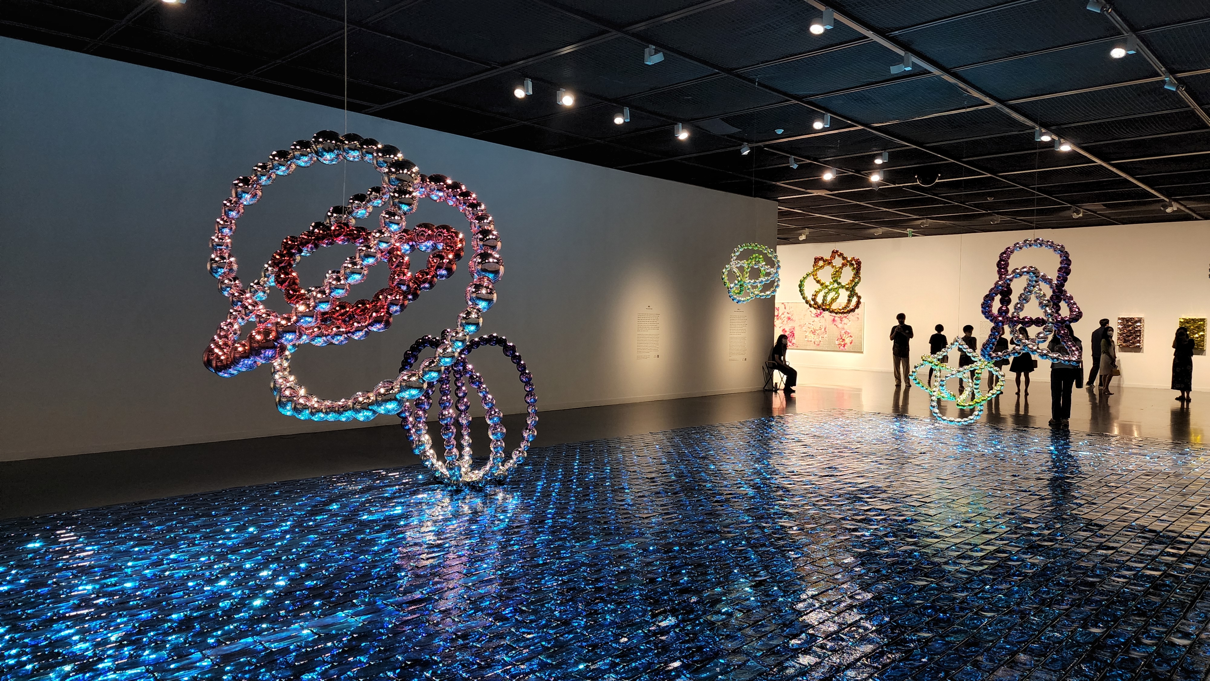 얼마전 올라퍼 엘리아슨의 전시에서도 이렇게 무한하게 반복되는 구슬로 엮인 작품들을 선보였는데 크기 자체는 장-미셸 오토니엘의 작품이 훨씬 크고 작품 수도 많았습니다.