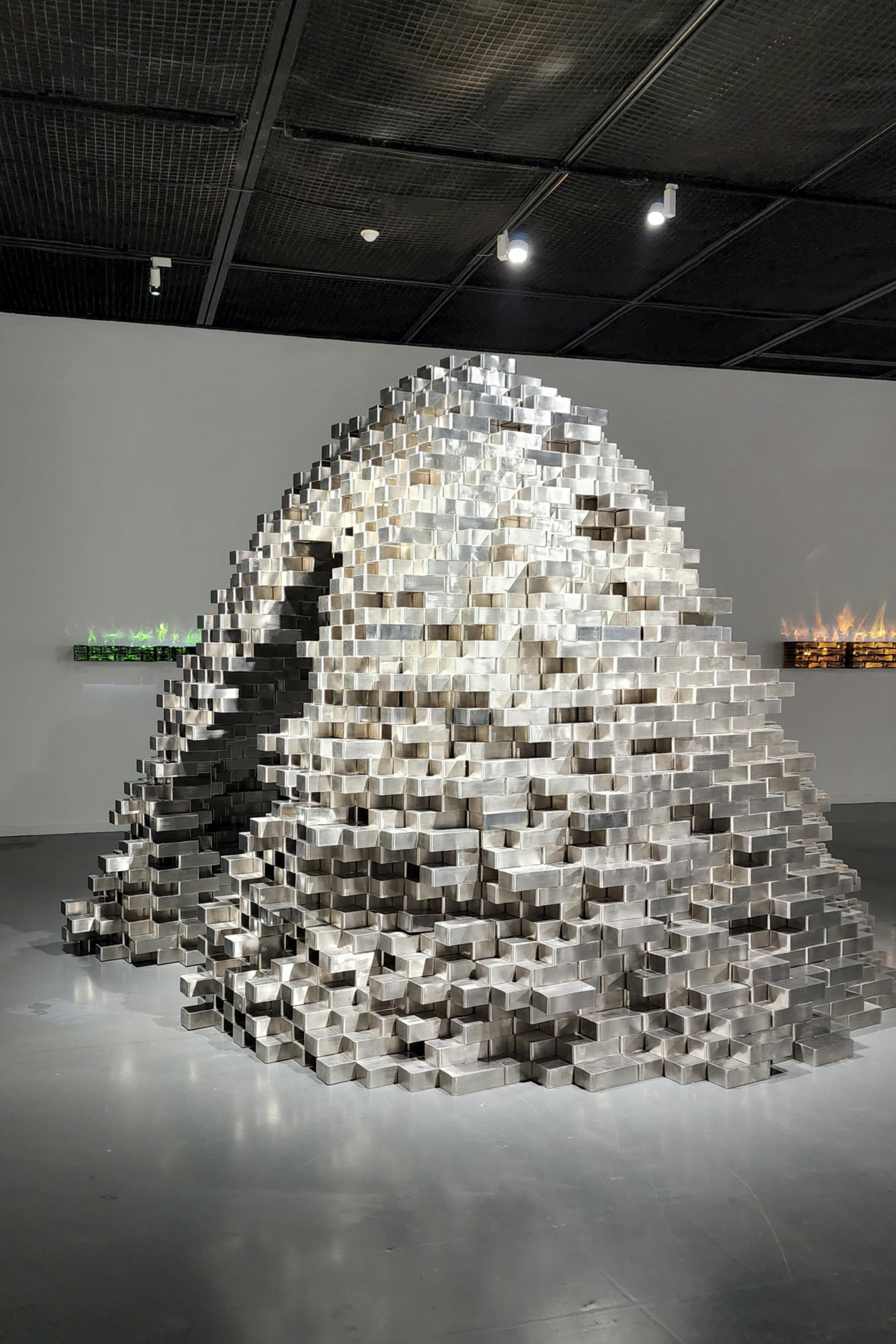 거울 유리를 재료로 하여 매듭 형상으로 만들어진 이들 조각은 작품의 표면에 무한 반복되는 이미지의 상을 만들어내며 ‘상호작용’과 ‘무한’의 개념을 시각적으로 보여준다.