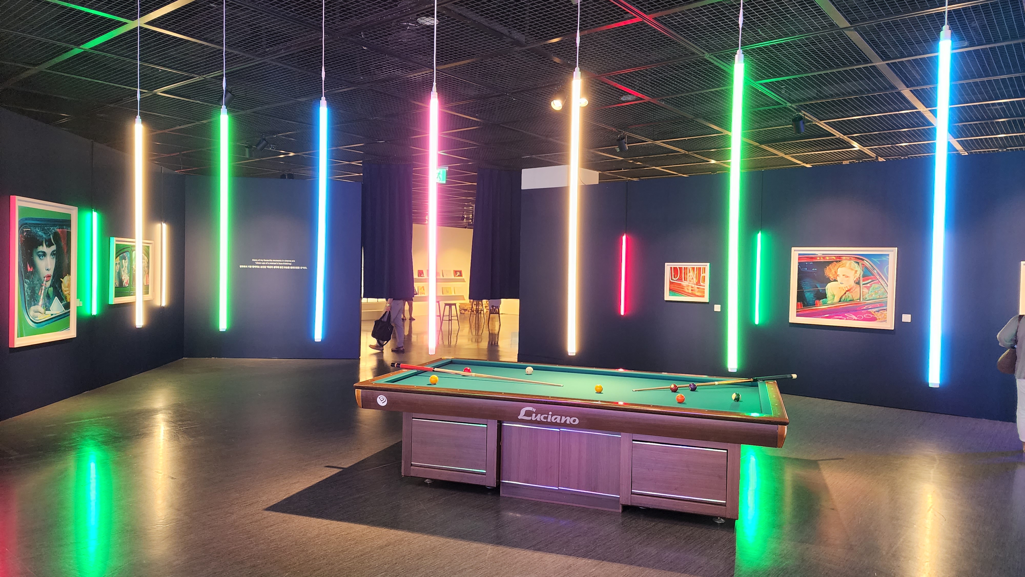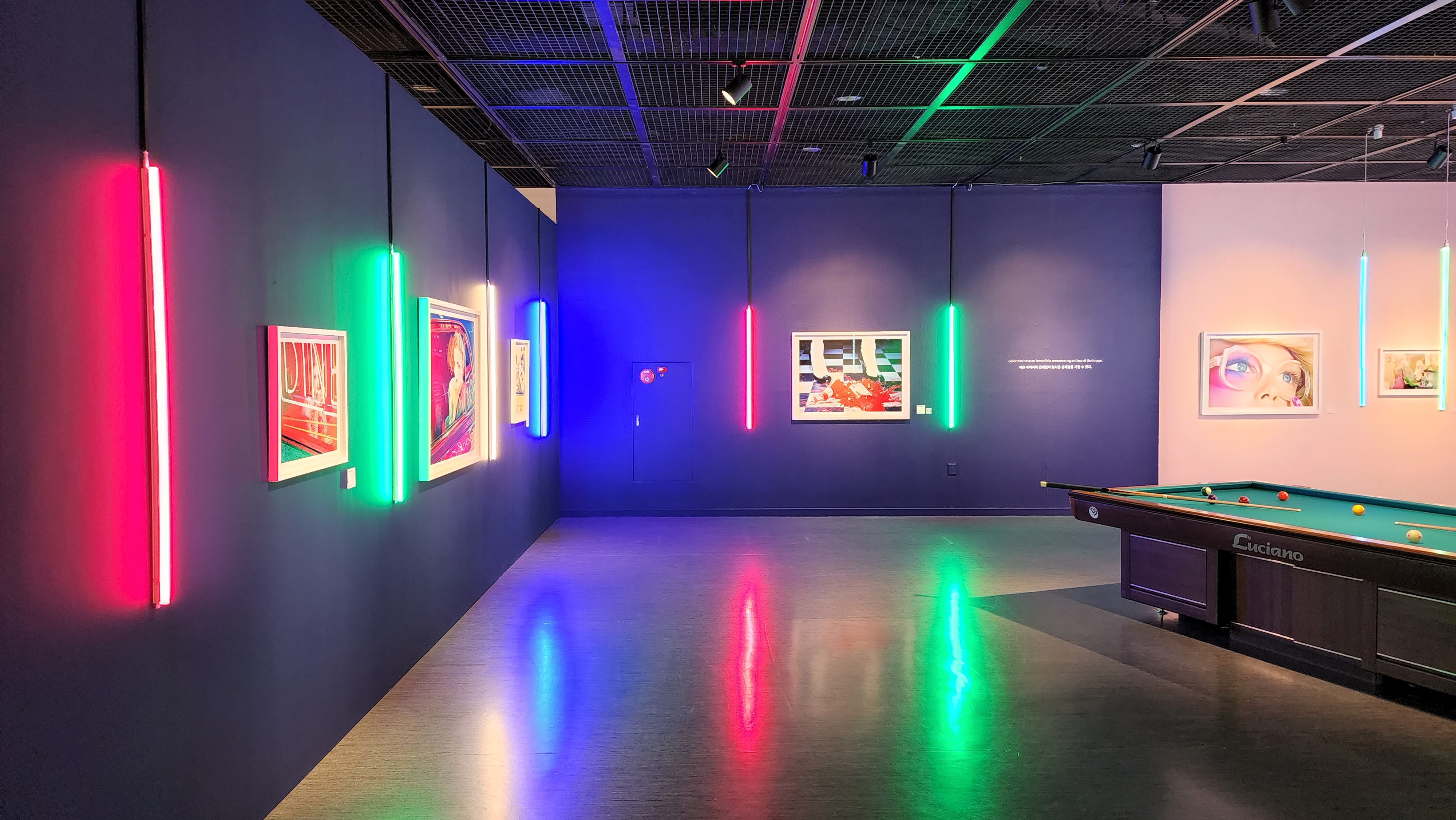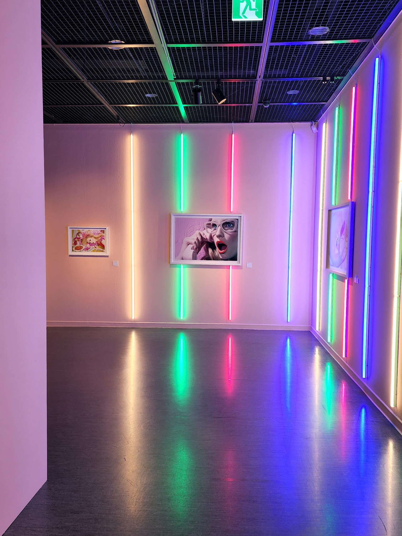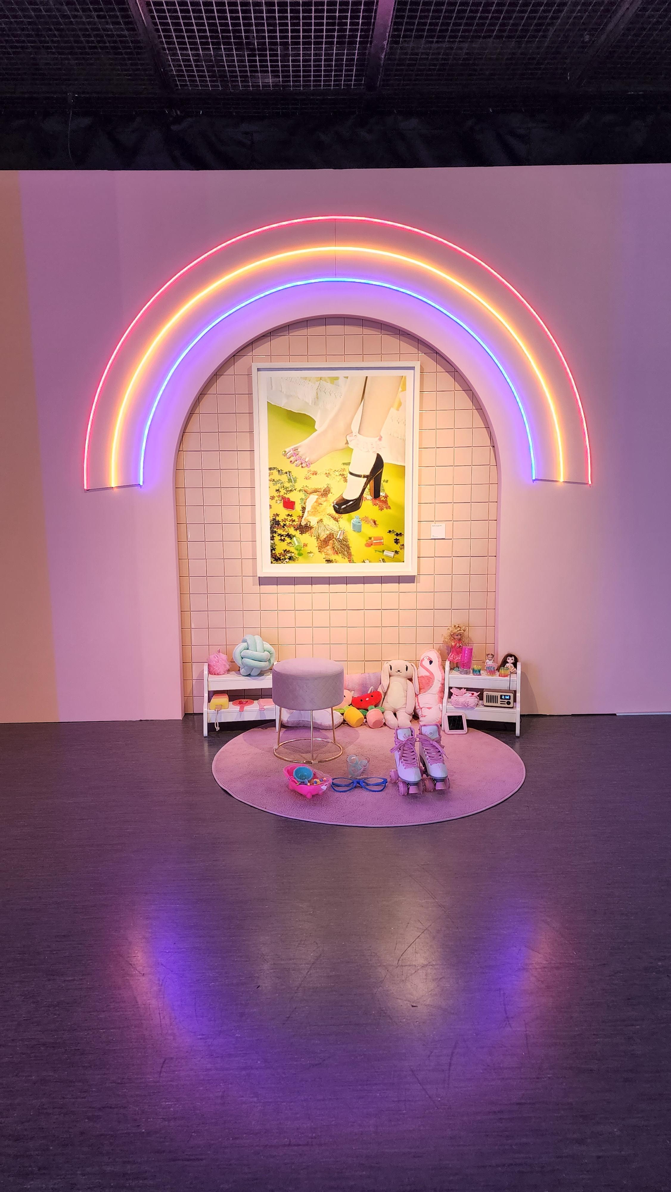 마일즈 알드리지는 90년대 팝 문화와 사이키델릭 문화에서 영향을 받았는데 들어서면서부터 네온 톤의 분위기가 그 당시 유행하던 하이틴 드라마를 생각나게 합니다.