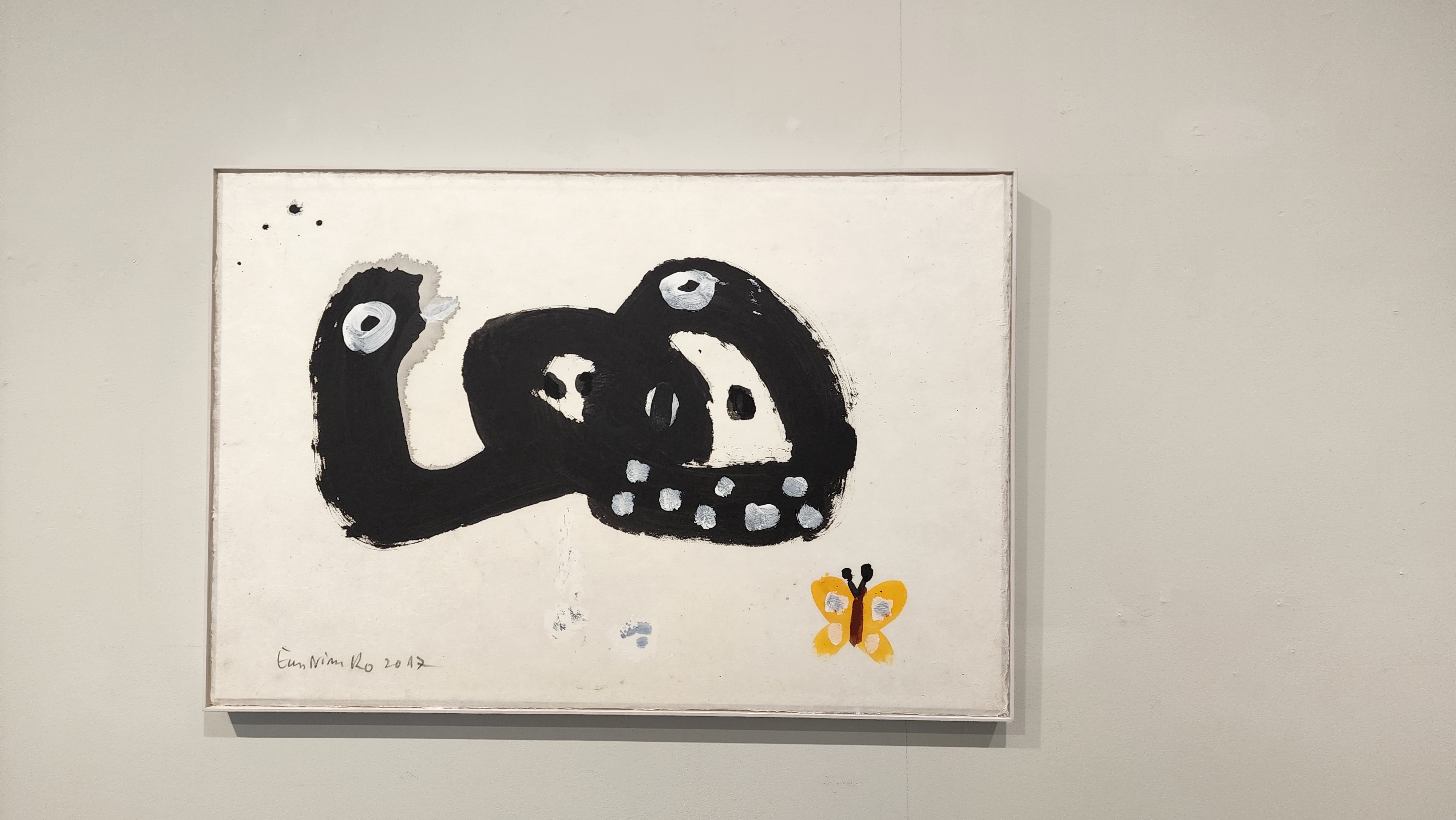 선으로 보이는 물체는 뱀이나 장어(?) 같아 보이는데 그 옆에 나비가 무서운 존재를 희석시켜 주고 있습니다.