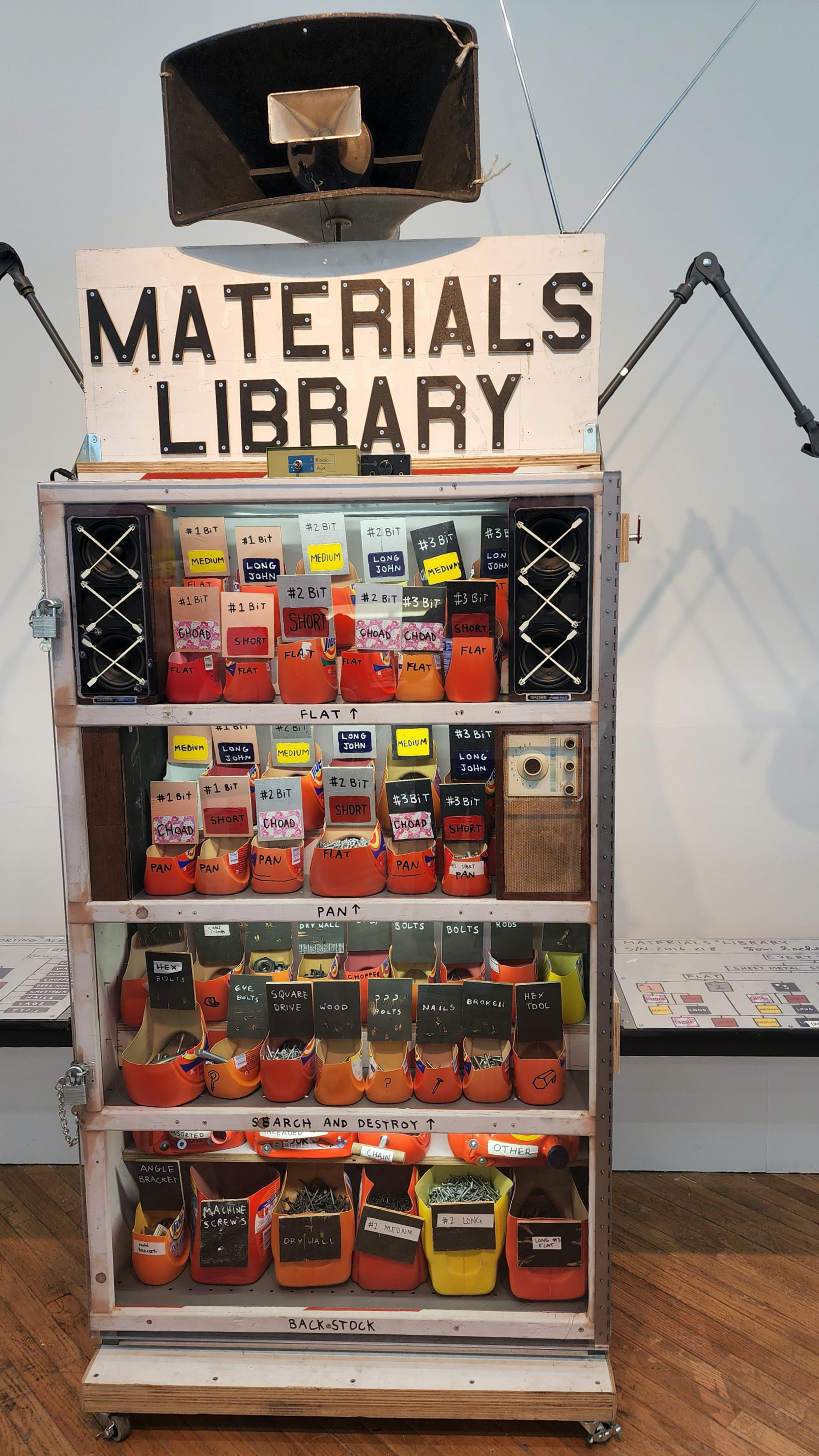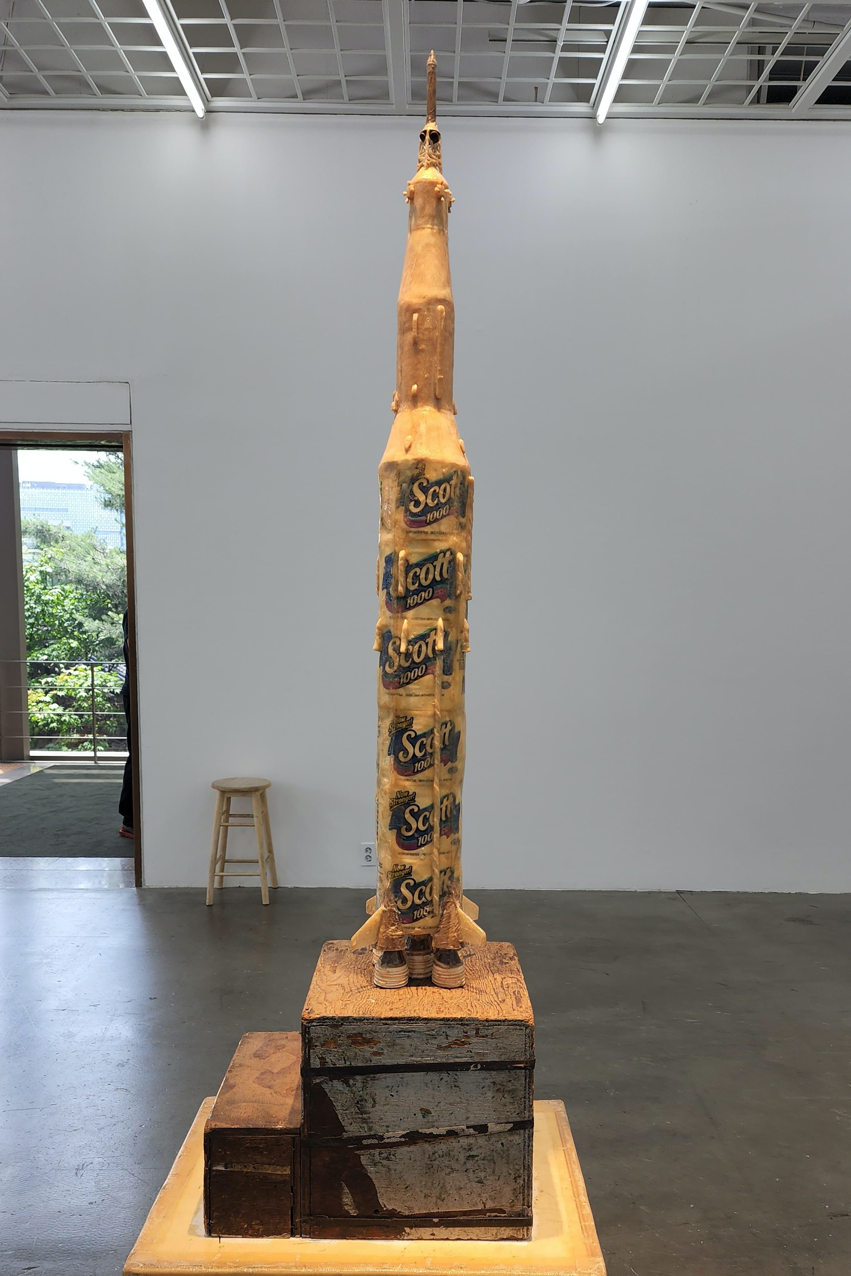 1전시실에는 아폴로 프로그램의 새턴 5호 달 탐사선(Saturn V Moon Rocket)의 브리콜라주 버전과 각 탐사에서 사용됐으나 이제는 또 다른 세계로 향하는 톰 삭스의 역사적 여정에 대한 토템적 헌사로 전시된 ‘특수 효과(Special Effects)’의 작품들을 비롯한 조각 작품들이 전시된다.