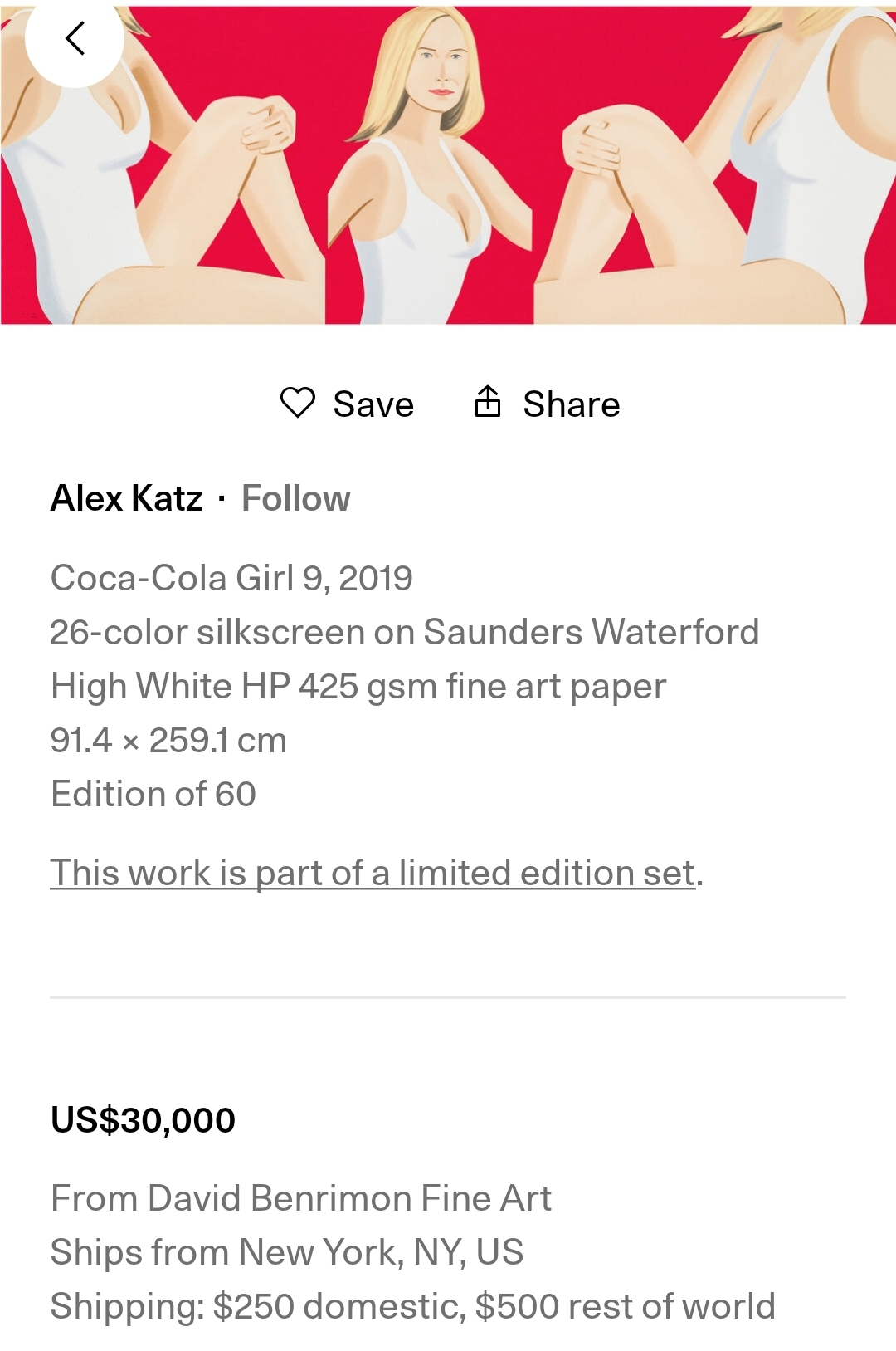 이우환 화백 스페셜 공동구매가 끝나자 마자 Alex Katz(알렉스 카츠)의 'Coca Cola Girl 9'의 그림공동구매가 있습니다.