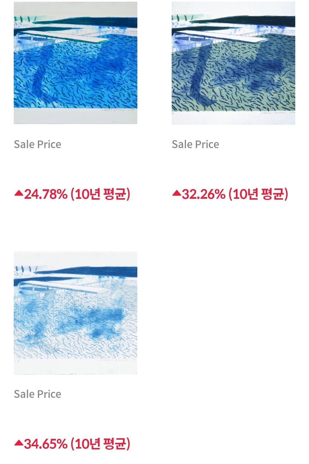 MutualArt 판매가 차트에 따르면 지난 36개월(3년)동안 평균 추정가 대비 70% 높은 가격으로 판매되었다고 합니다. 특히나 프린트 작품의 경우 최저 추정가 대비 120.9% 수준에서 판매되었습니다.