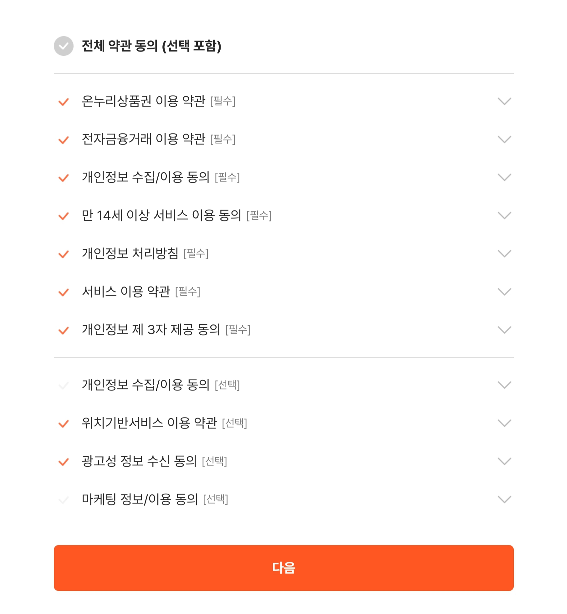 4. 약관에 동의합니다. (귀찮아서 그냥 다 선택해버렸어요)