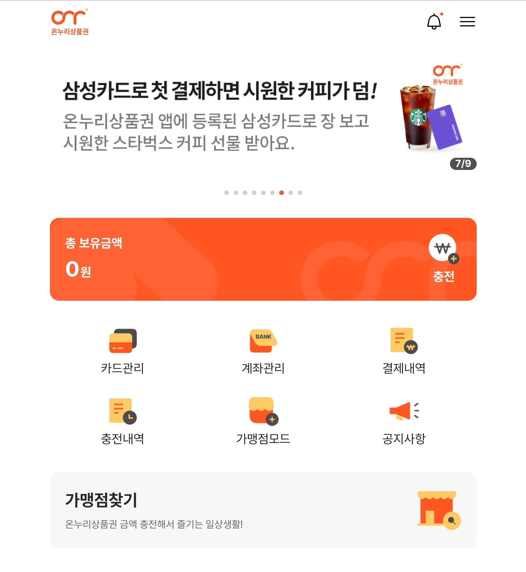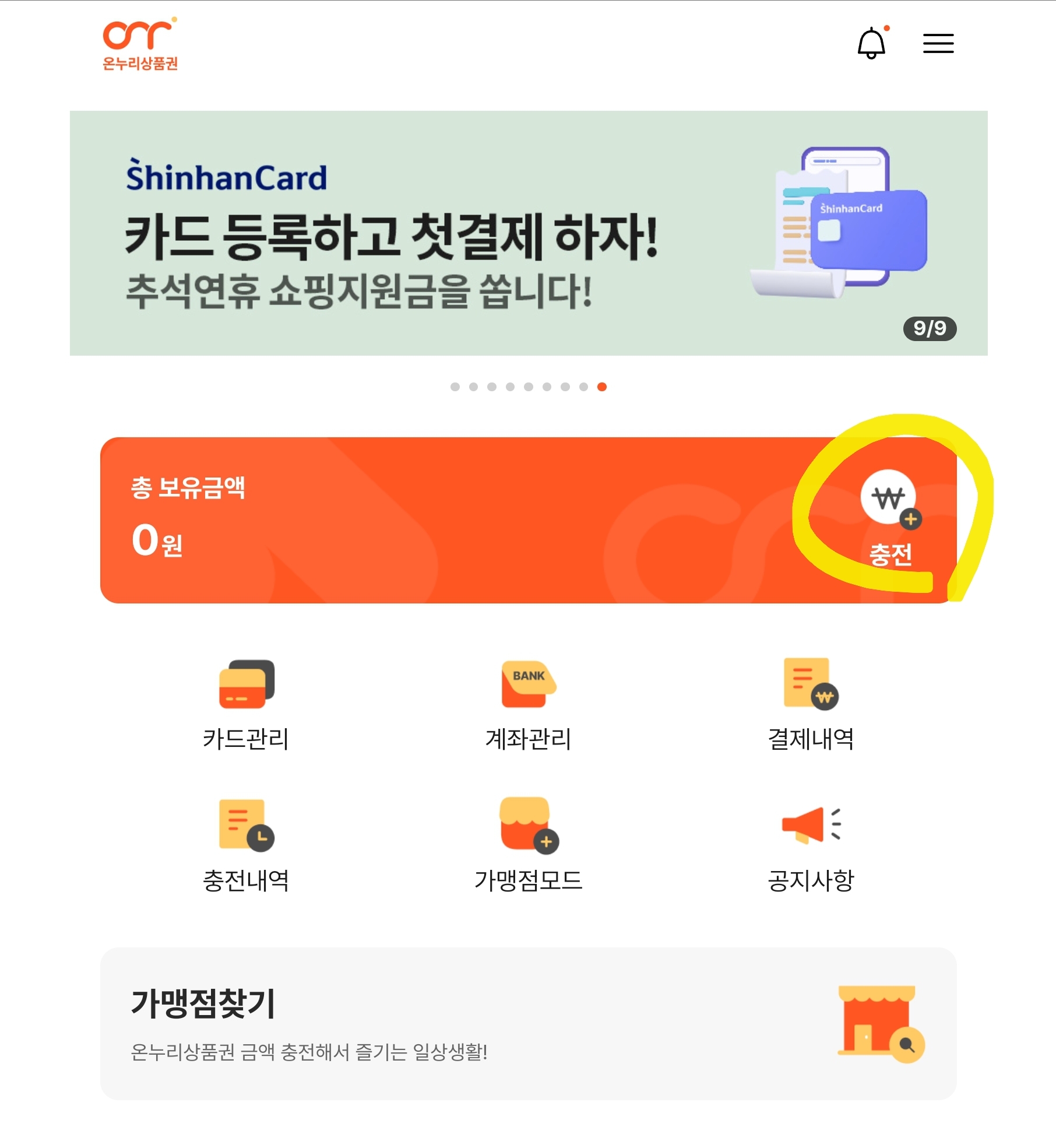 이번에는 그동안 지류 상품권으로 살 수 있었던 온누리상품권을 기존에 내가 쓰던 카드에 충전해서 쓰는 방식으로도 쓸 수 있다고 해서 일단 만들어봤습니다.