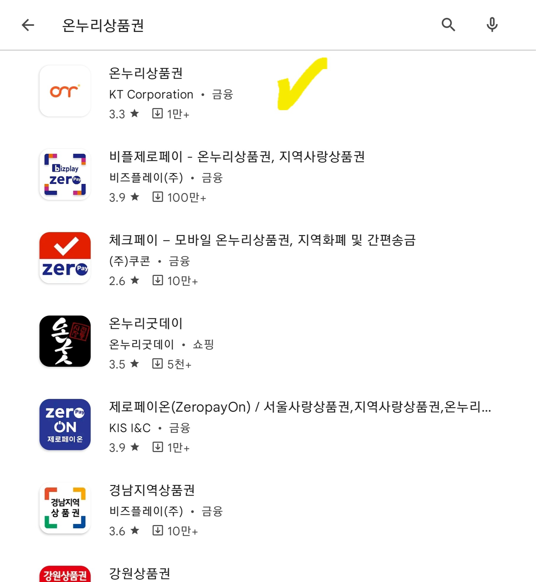 2. KT Corporation에서 만든 온누리상품권을 선택해서 설치합니다.
