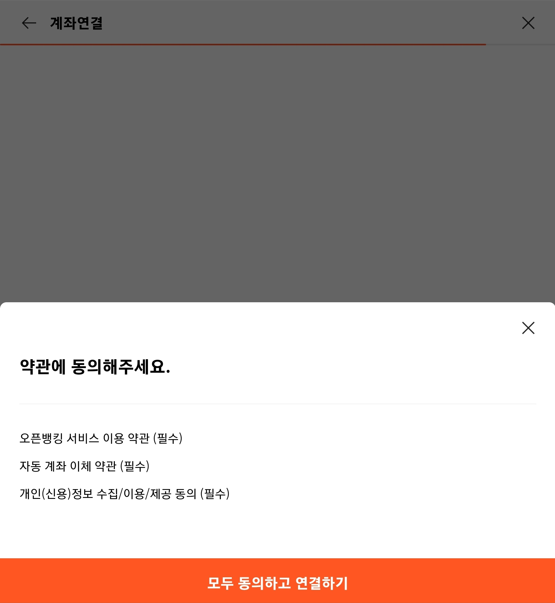 8. 약관을 동의해주면 계좌 연결까지 끝나게 됩니다. (다음번 충전 시에는 이 과정들은 없을 거예요)