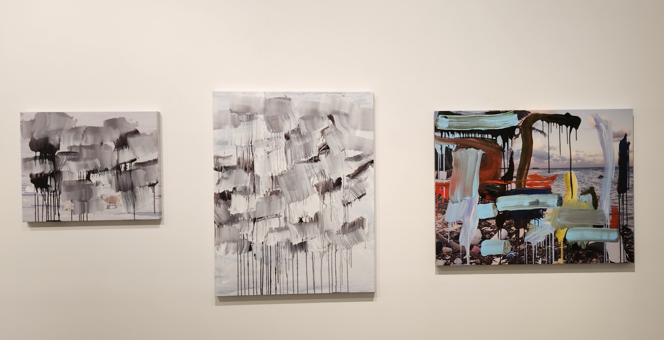 북극곰과 쓰레기 더미 사진 위에 덧칠한 작가님의 특히 흘러내리는 물감은 어딘지 모르게 북극곰과 지구의 눈물 같아 보이기도 했습니다.