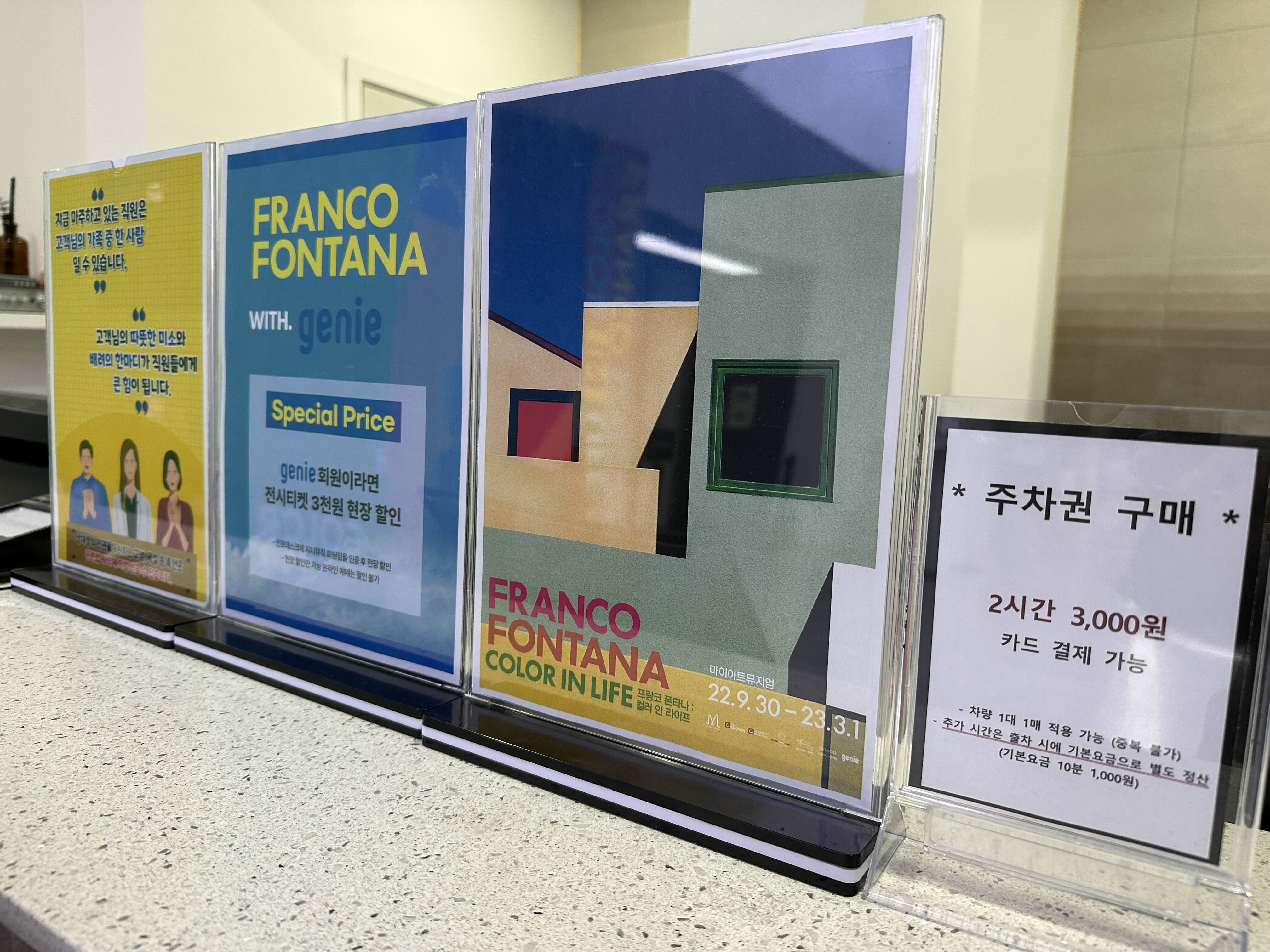 주차권은 구매해야 하고, 지니 회원인 경우 현장 할인도 있네요.