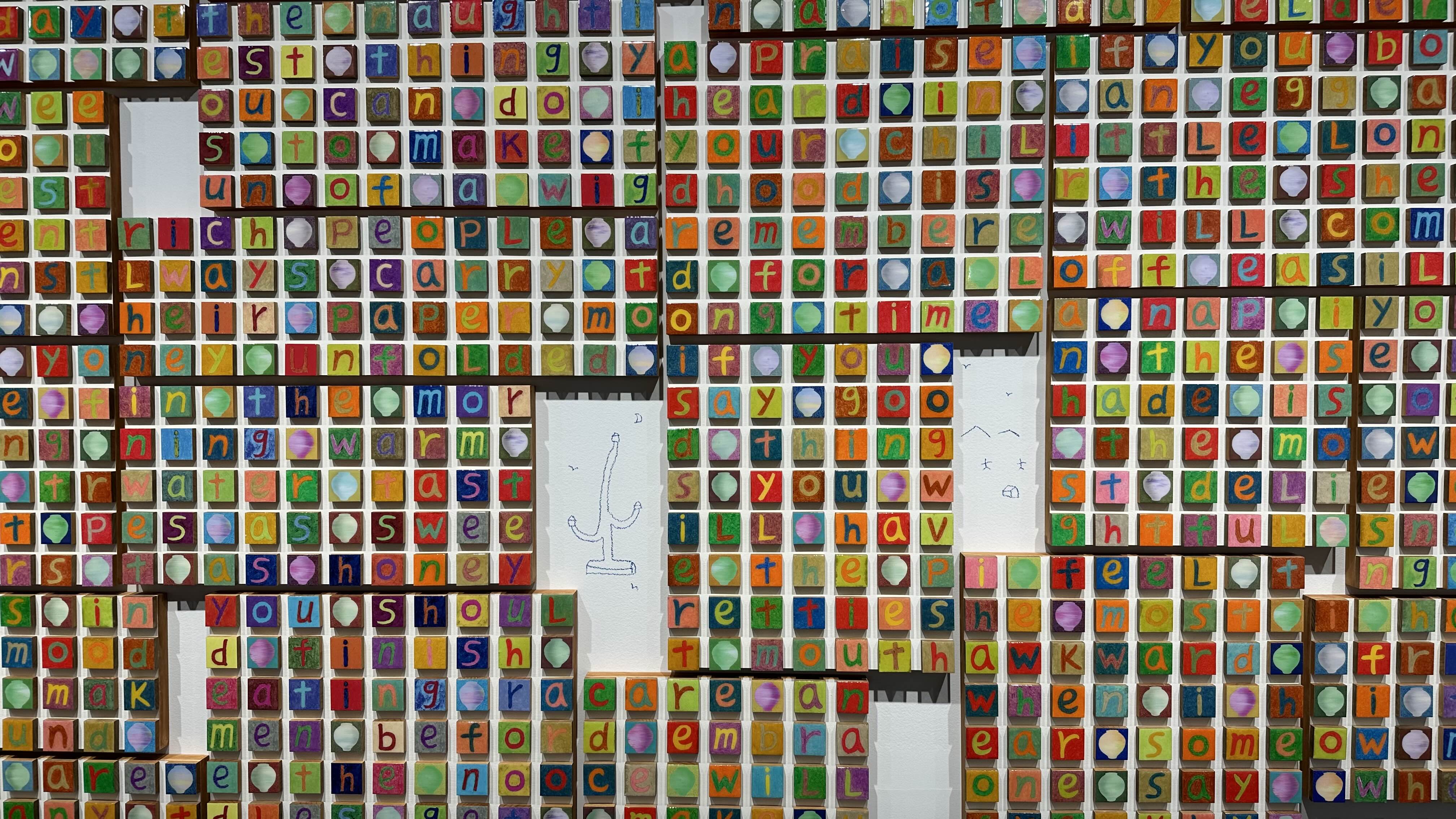 알파벳이 모여서 단어를 만들고 문장이되는 작가의 작품 세계에서 핵심 요소인 '연결성'을 의미하고, 1980년대부터 지금까지 계속해서 세계를 연결중이라고 하시네요.