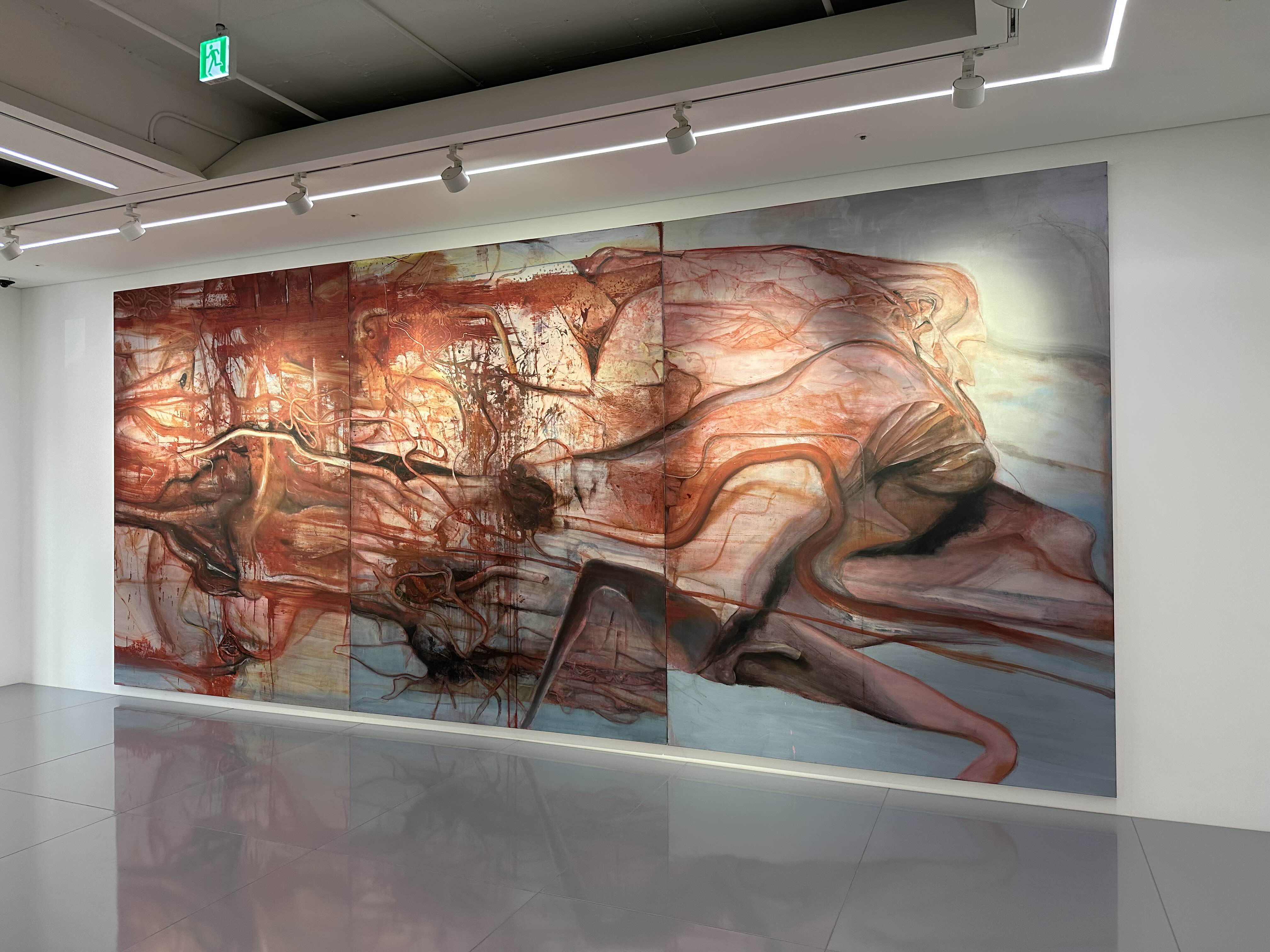전시 공간의 1층과 2층은 맨디 엘-사예와 이근민 작가의 작품이 같이 전시되어 있습니다. 피나 피부, 장기를 떠올리게하는 색을 쓴다거나 푸른 파스텔의 색상 때문인지 엘-사예의 작품은 일몰 혹은 멍이 든 피부를 연상시킨다고 합니다.